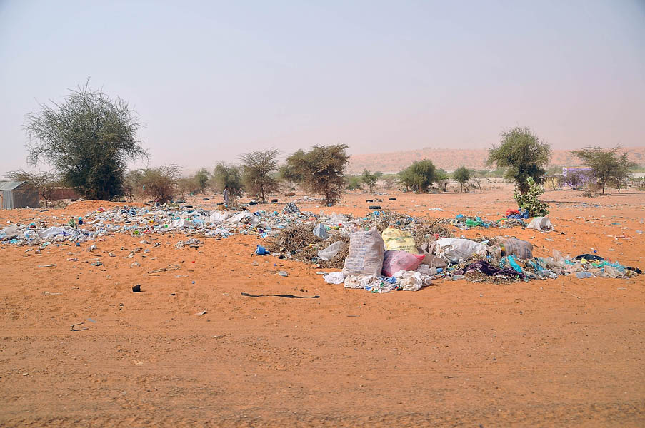 Seguimos el viaje dirección Aleg y el “paisaje” no cambia, allí donde hay humanos, todo alrededor es un gran basurero lleno de plásticos y todo tipo de restos.