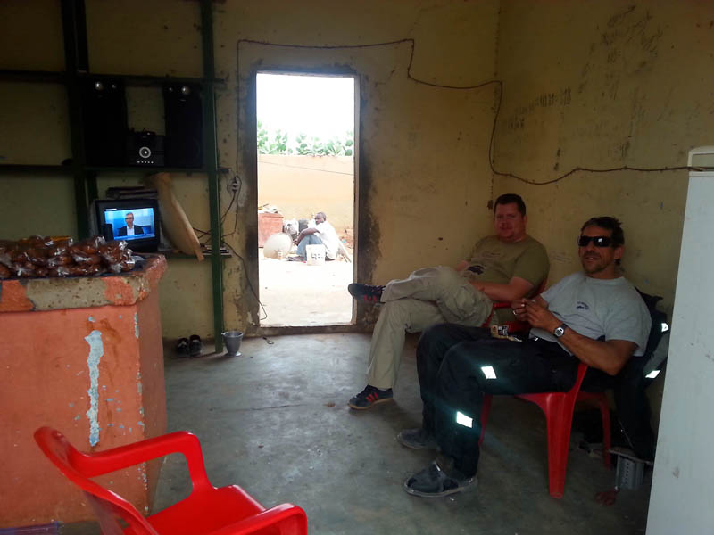 Tras despertarnos, preparamos el desayuno en la misma habitación y nos pusimos a reparar el capó del coche. Después de despedirnos de Esteban, que seguiría hacia Mali, nosotros repostamos y cogemos la pista que nos habría de llevar a Selibaby con intención de llegar al paso fronterizo de Bakei.