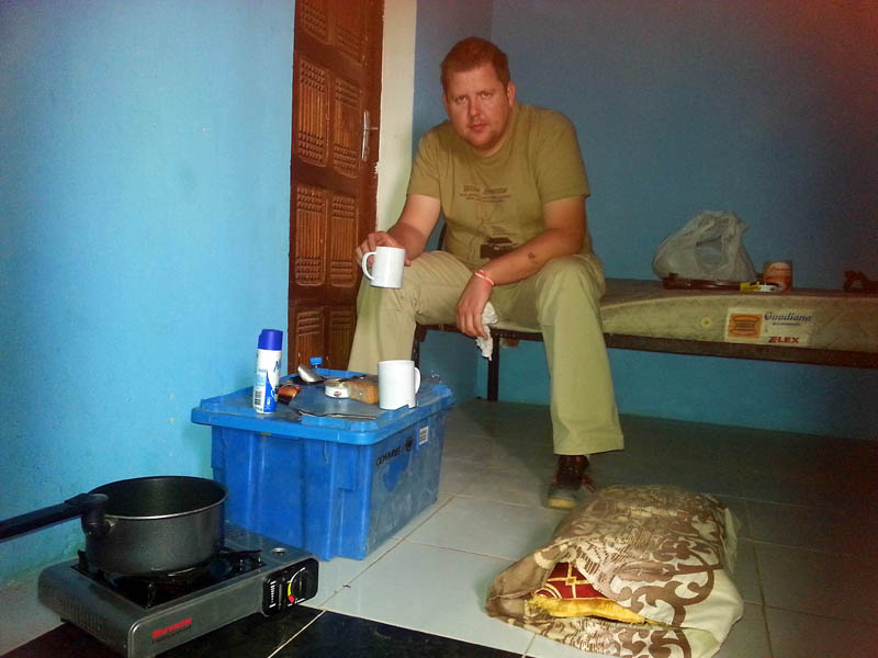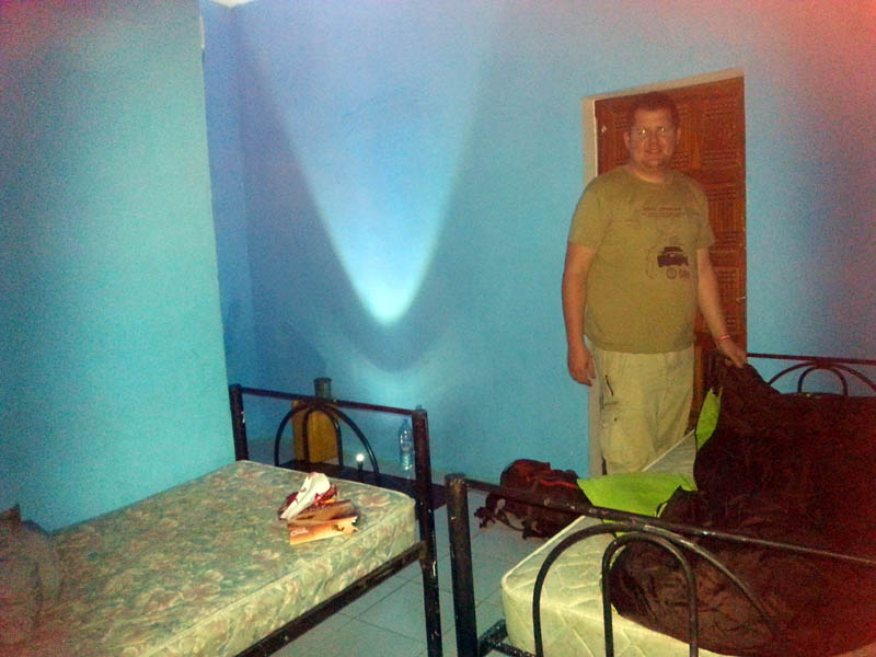 Tras llegar a Kiffa nos encontramos con que el hotel está abandonado, llegamos a otro y al ver que lo que nos ofrecen es una mierda, nos vamos. Llegamos a un albergue, igual de asqueroso pero más barato, suficiente para echar el saco encima del catre, única decoración de la habitación que no tenía ni agua ni luz.