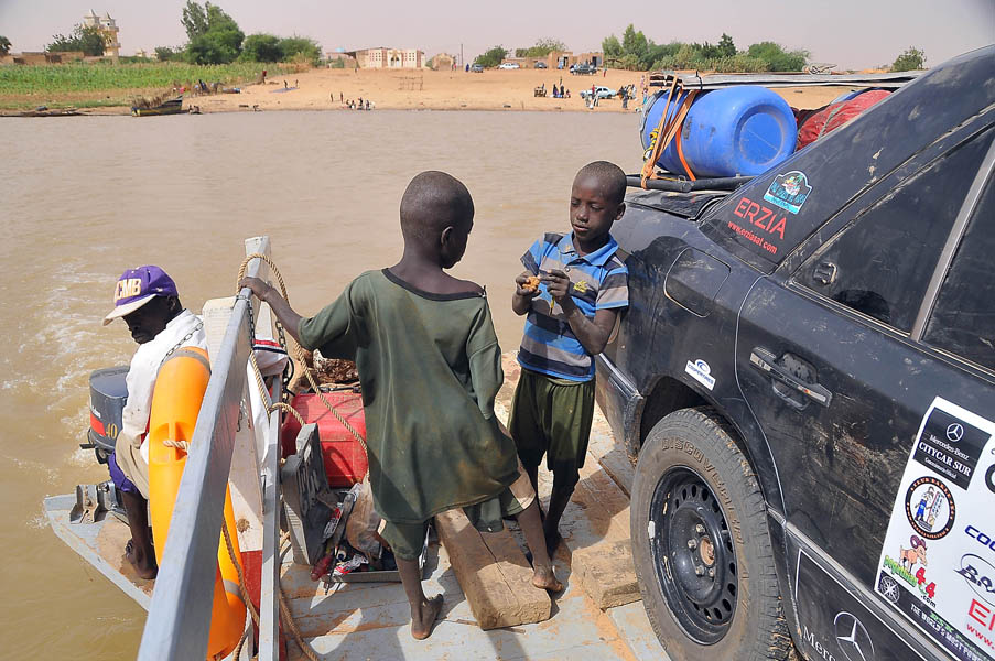 En un momento dado, el conductor de la pick up para y nos dice que sigamos… y nosotros seguimos, aunque desde luego no tenemos nada claro hacia donde vamos, finalmente llegamos a Kankessa, pasamos el control de la policía que nos advierte claramente indicándonos con la mano “droite, droite, Ouid Yenjé, Selibaby… ¡no gauche, Mali!” (derecho, derecho, ou yenye, Selibaby… ¡no a la izquierda, Mali!). Un joven del poblado, en un Mercedes 190 (allí siguen siendo tan habituales como en el resto de África), nos dice que le sigamos, que él nos indica. Le seguimos y, de repente, en medio de una pista, vemos como nos persigue otro Mercedes 190 blanco, como un loco, me aparto un poco para dejarle pasar y del lado del copiloto aparece un brazo que nos indica que paremos, reducimos velocidad y el tío que iba dentro nos dice que le sigamos hacia atrás gritando bastante cabreado “control, control”.
