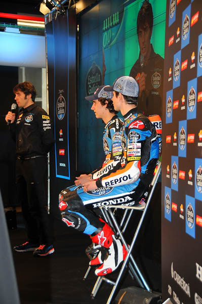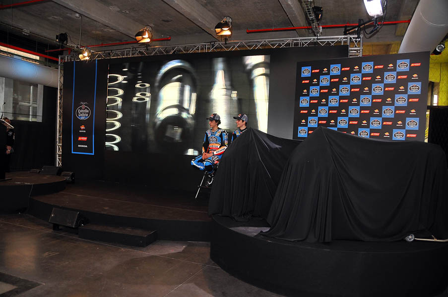 Durante el acto se descubrió la moto con la que competirán, sendas Honda NSF250RW desarrollada por el departamento de competición de Honda con el apoyo de Repsol, que un año más lucirá su logo tanto en la moto como en los monos de los pilotos.