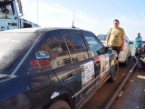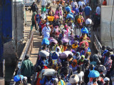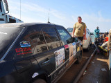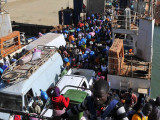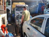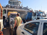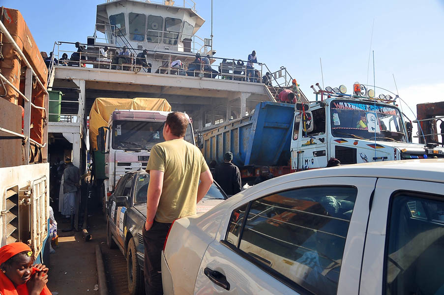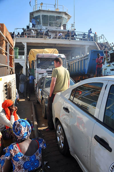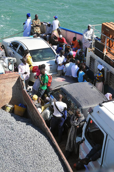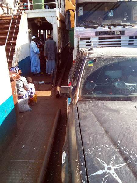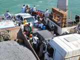 El domingo 22, nos levantamos a las 5,30, recogemos los bártulos y nos vamos, todavía de noche a la cola del ferry, perdemos (no cogemos), el de la siete y nos toca esperar a otro que finalmente sale a las 11,15. Tras “despedirnos” de Paco con la consiguiente “negociación” del “dame más, esto es muy poco”, embarcamos en un ferry sobrecargado en el que primero meten coches y camiones y luego “rellenan” de gente aprovechando hasta el último hueco. Haciendo fotos desde la parte de arriba en un momento llegué a ver hasta doce personas apoyadas o subidas en los capós del Mercedes. Es fácil imaginarte en las noticias algo así: “ferry naufraga, se han recuperado 300 cadáveres, 125 supervivientes, no se conoce el número de desaparecidos al no controlarse el número de personas embarcadas en un ferry preparado para 150 pasajeros…”.