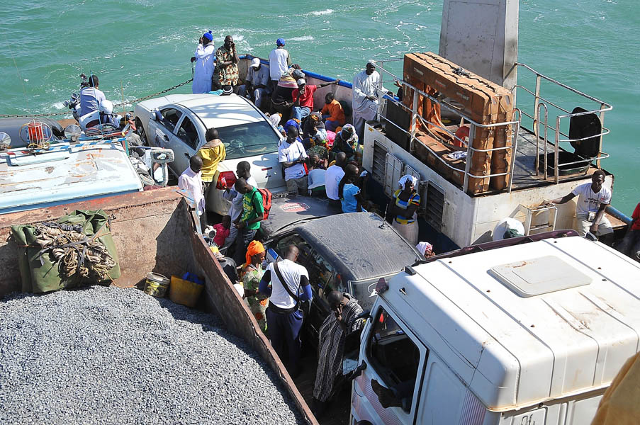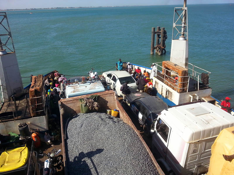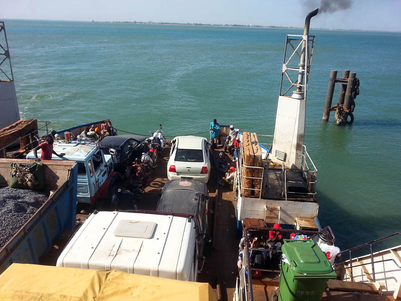 ¡Por fin!, salimos de la frontera, son las cinco de la tarde y esperamos coger un ferry que sale de la población de Barra hasta Banjul, para buscar hotel por allí. Tan solo un par de km. después de la frontera nos paran en un control, más o menos nos registran el coche, hasta que llegan al botiquín. Yo acostumbro en este tipo de viajes a llevar un botiquín bastante completo. Antibióticos varios, medicamentos para todo tipo de molestias gástricas, un abanico bastante completo de calmantes… Nos vacían el botiquín al completo y caja a caja se ponen a preguntarme para que valía cada cosa, que si tenía receta, que… hasta que llegaron a la caja de Lexatin, que además de su capacidad ansiolítica, también es un potente relajante muscular que viene de huevos cuando, estando en el culo del mundo y sin posibilidad de conseguir medicamentos, necesitas algo que calme los dolores de un esguince, fractura o tortícolis.