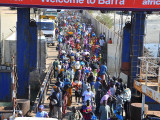 Tras indicarnos sin que nosotros se lo pidiésemos, un hueco donde aparcar en la abigarrada calle, llena de coches, carros, camiones, algún autobús y una marea de gente yendo y viniendo, Paco nos pregunta si tenemos billetes, le digo que no, pero que no se preocupe y me voy andando hacia la entrada del ferry, el me sigue,“no pasa nada, amigo”, saco los billetes, me dice un sitio donde cambiar dinero y me sigue como si fuese mi sombra.