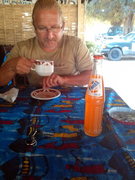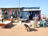 Le seguimos callejeando por las calles de arena, y finalmente llegamos a un vallado que nos abren, metemos el coche y nos presenta al dueño. Nos ofrece una habitación por 20 €, le pedimos verla y… le preguntamos si podríamos montar la tienda de campaña en el patio… voy a pasar voluntariamente de describir la “habitación”.