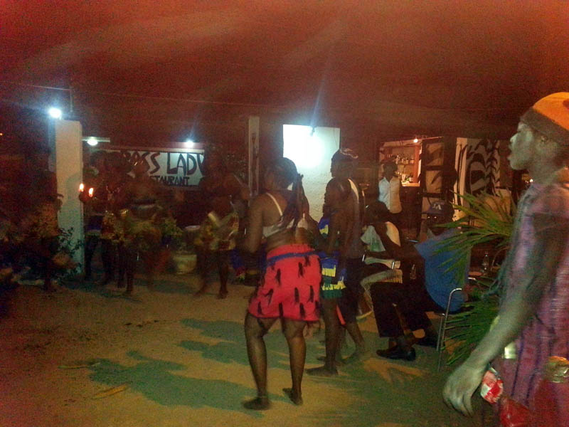 Como en el hotel no les funcionaba el TPV, decidimos darnos una vuelta por Senegambia, para verlo, sacar dinero y posiblemente, cenar. Verlo lo vimos, sacar dinero también, aunque esto merece una mención propia. Resulta que el billete más grande es de 100 pelotillos (unos 2 €), como en el hotel teníamos que pagar 6.200… el cajero no daba más de 20 billetes, por lo que lo tuve que sacar en cuatro veces, con el consiguiente cabreo de los que estaban esperando y… las cuatro comisiones que después me cobró el banco. Por último, pasamos de cenar en Senegambia al ver que se trataba de una especie de Benidorm, lleno de pieles pálidas y con todo lo que el turista profesional puede soñar y nos dirigimos de nuevo a nuestro hotel, también lleno de “toubabs” (blancos en lengua Wolof), pero mucho más tranquilo y en el que ya sabíamos que íbamos a cenar bien, como así fue.