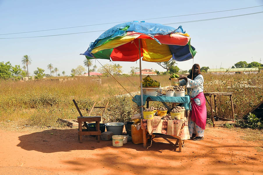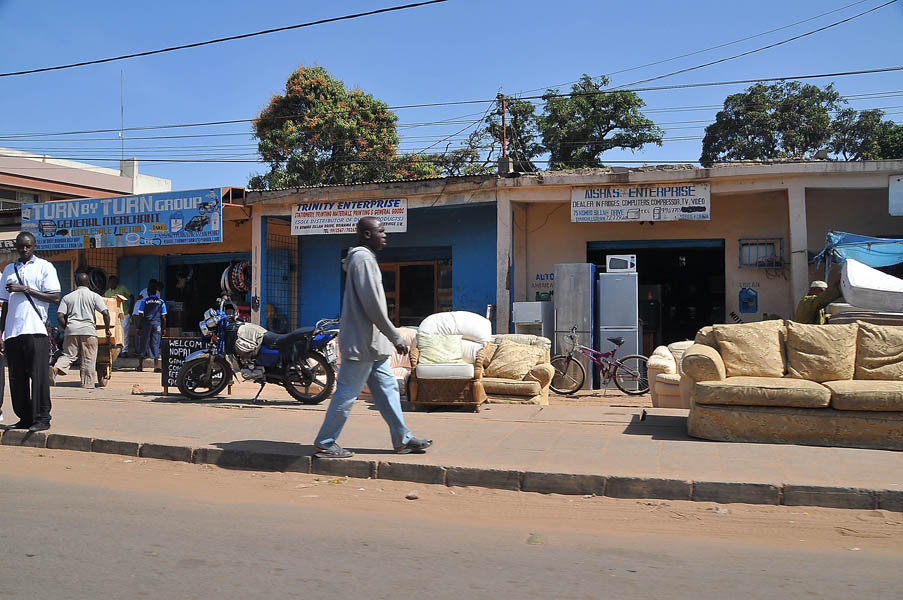 Hacia el norte llegamos a Serekunda, una ciudad que nació de lo que a Banjul le faltaba, espacio para expandirse y que en la actualidad es el verdadero cruce de caminos del sur del país, ya que la carretera que recorre toda la zona meridional del país, al sur del río Gambia, pasa por aquí, bifurcándose hacia Banjul por el norte, la zona turística al este y al único aeropuerto del país, cerca de Yundum, por el sur.