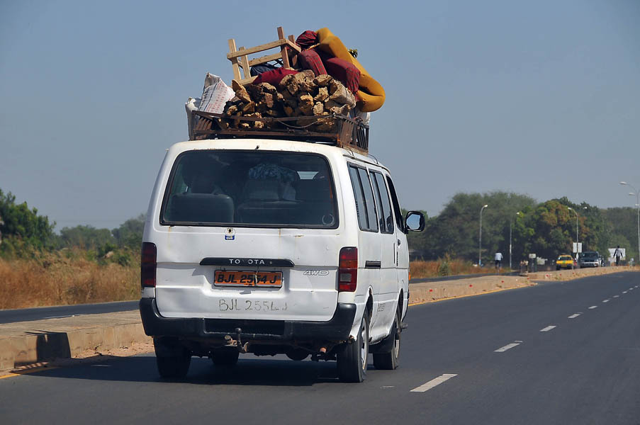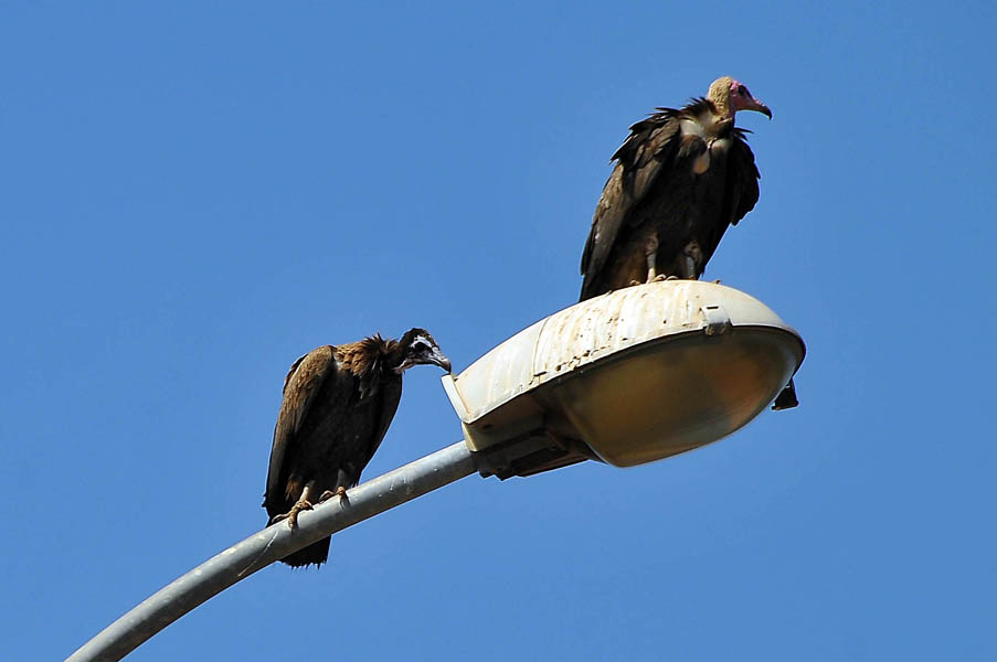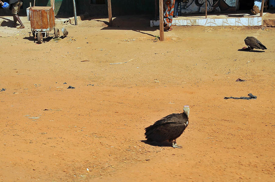 La gente sigue alucinando con nuestro viaje y especialmente con el Mercedes, hasta el punto de que en ocasiones la policía nos para intentando comprárnoslo. Nosotros, alucinamos con los “gorriones” que se gastan los gambianos, que no son otra cosa que buitres; de Ruppel, Orejudos y especialmente, Encapuchados, los ves tranquilamente posados en las farolas de la carretera o comiendo carroña y desperdicios junto a la gente en la misma cuneta.