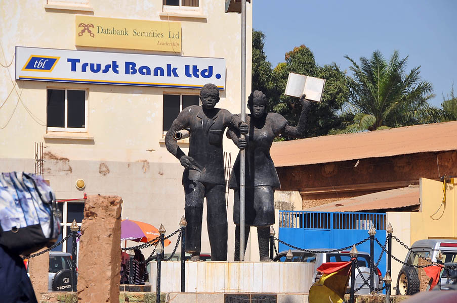 Tras llegar a Banjul, enseguida nos damos cuenta de que es una ful… bueno, vale, me explicaré un poco más. Banjul está situada en el extremo oriental de una pequeña isla que surge en medio de una ensenada anegada por las aguas del Atlántico. Rodeada totalmente de agua, la falta de espacio ha impedido que existiese el desarrollo urbanístico mínimo propio de una capital, lo que la ha llevado a destilar un aire rancio, provinciano y decadente que te empuja al momento a salir de allí.