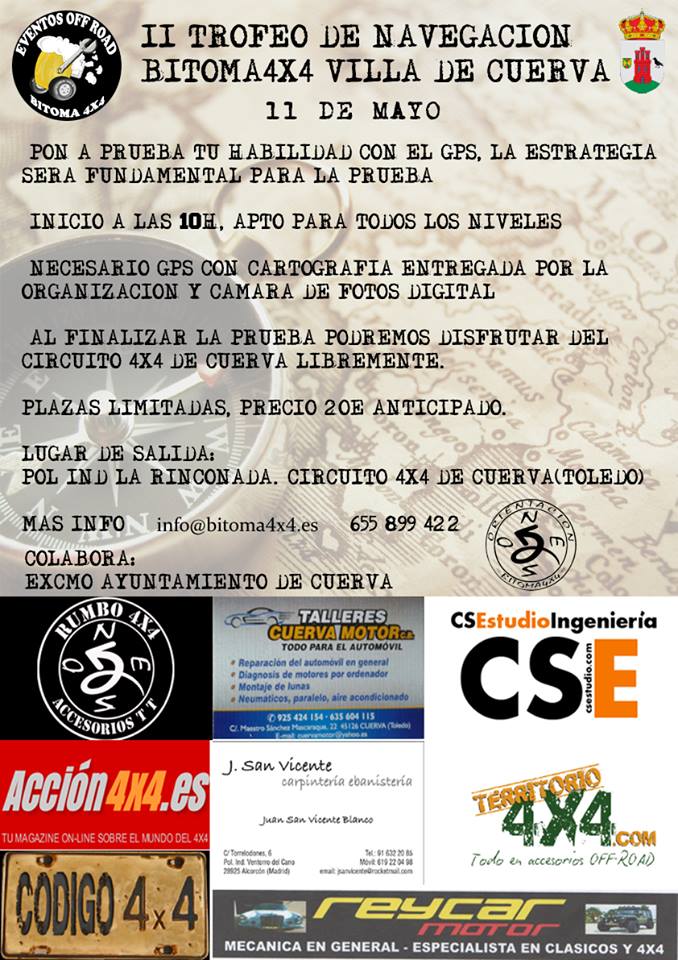 Por su parte, el domingo tenemos el II Trofeo de Navegación Bitoma 4×4, que se celebrará en la también toledana Villa de Cuerva.