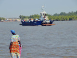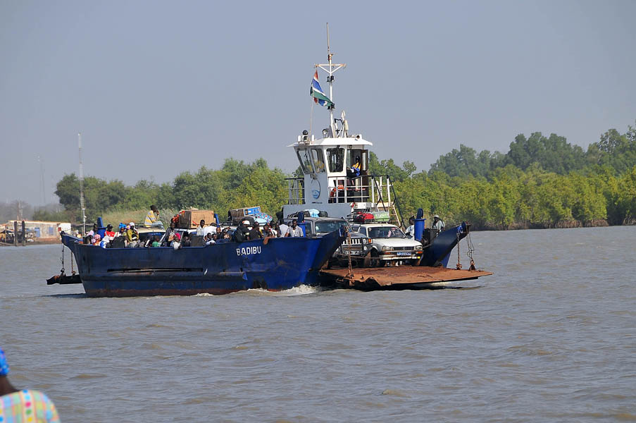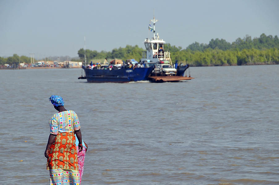 Nos levantamos a las cinco de la mañana, y a las cinco y media ya estábamos en el coche con la intención de llegar al puerto de Banjul y coger el primer ferry. Al llegar, y entre el revuelo de bastante gente, nos dicen que el ferry está roto, que no saben si lo arreglarán hoy… sacamos el mapa de carreteras y vemos que a unos 200 km. al este, junto a Soma, está la Transgambiana, la carretera que lleva hacia el norte, a la frontera de Farafeni. También hay que cruzar el río en un ferry, pero nos dicen que allí funcionan sin problemas.