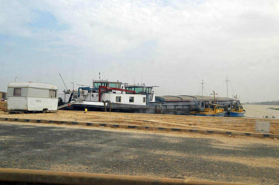 Toda la carretera es buena, y como es temprano apenas hay tráfico, el único escollo son los controles militares, en los que los militares se mosquean porque no hablamos bien ingles, dándonos en varias ocasiones una charla-rapapolvos en la que nos explicaban que el inglés era una lengua universal y que como era posible que no lo hablásemos perfectamente. Queríamos salir de Gambia ya, por lo que las gilipolleces de los soldados las íbamos echando al saco de las gilipolleces (que por cierto, cada vez pesaba más), y finalmente, sin contratiempos, llegamos a Yelitenda, la orilla sur del río Gambia y donde deberíamos de coger el ferry.