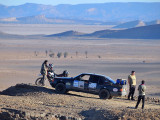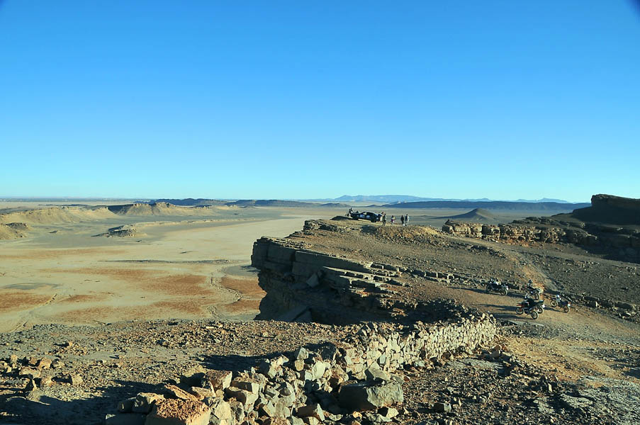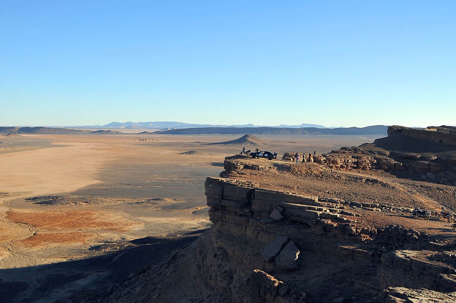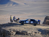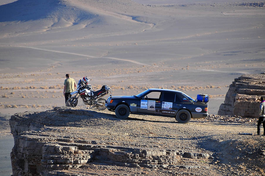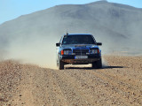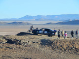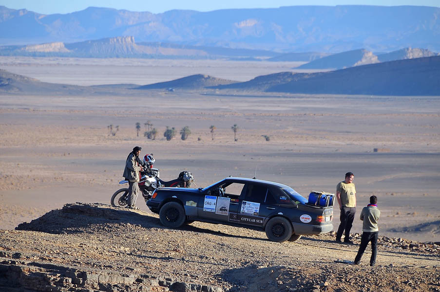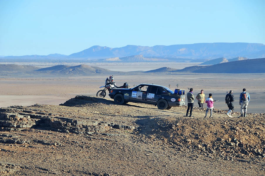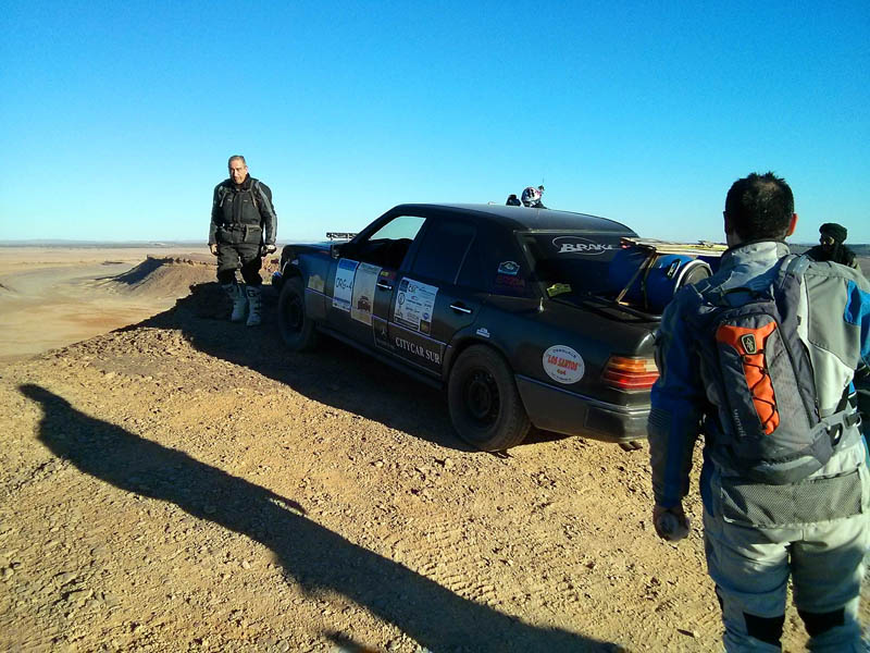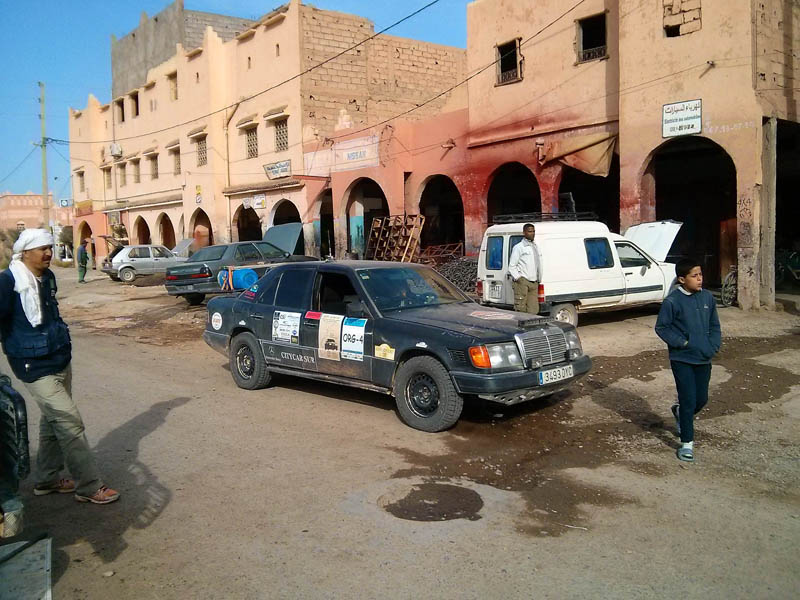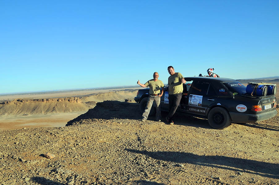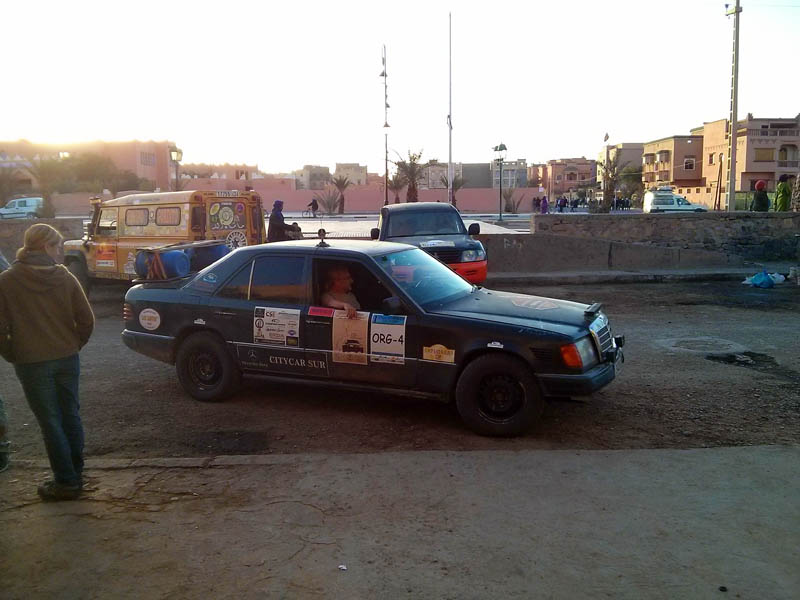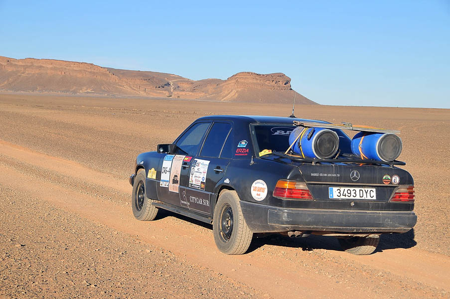 El primer día del 2014 nos levantamos tarde, la prisa que teníamos era “entre una y ninguna”, así que desayunamos con tranquilidad y recordamos que ese día pasaba la caravana del África Eco Race por la gasolinera de Merzouga, por lo que nos dirigíamos hacia allí para ver si veíamos algunos de los coches participantes, lo que no fue posible porque ya era muy tarde; en honor a la verdad hay que decir que nos importó más bien poco, por el contrario, estuvimos un buen rato de animada charla con un grupo de amigos que estaban viajando con varios todo terrenos y un camión camperizado.