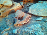En cualquier caso, el paraje es excepcional, y tras subir por la estrecha pista que nos lleva hasta lo alto del pico, nos encontramos con un mirador natural cuyas vistas son espectaculares y donde es fácil ver en sus paredes y suelo trilobites y anmmonites, fósiles que, al echarles un poco de agua, intensifican su imagen y se ven realmente bien.