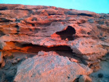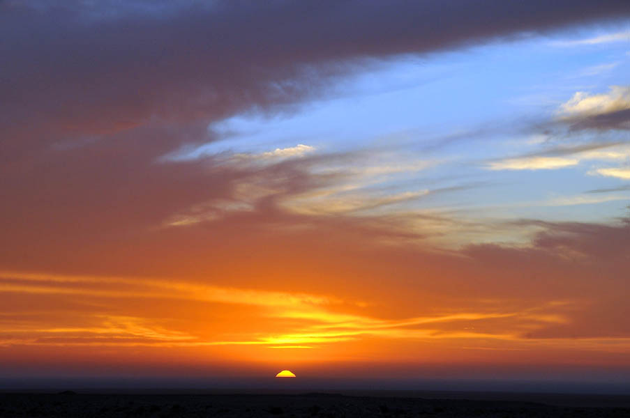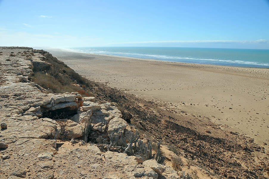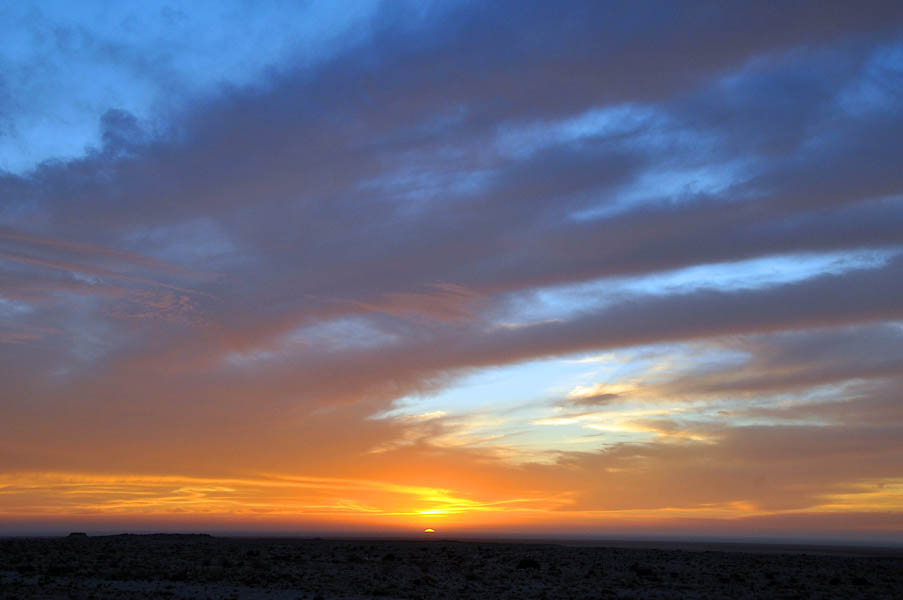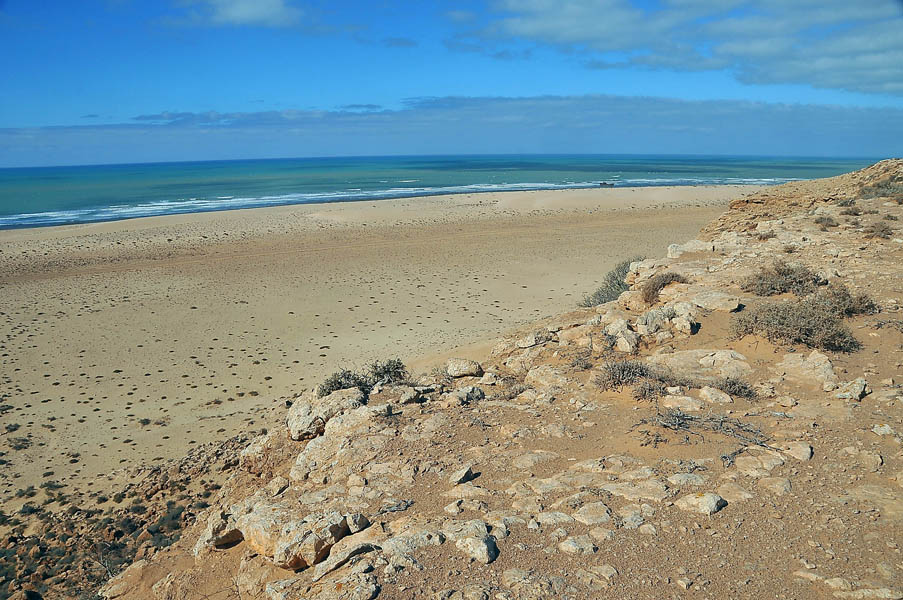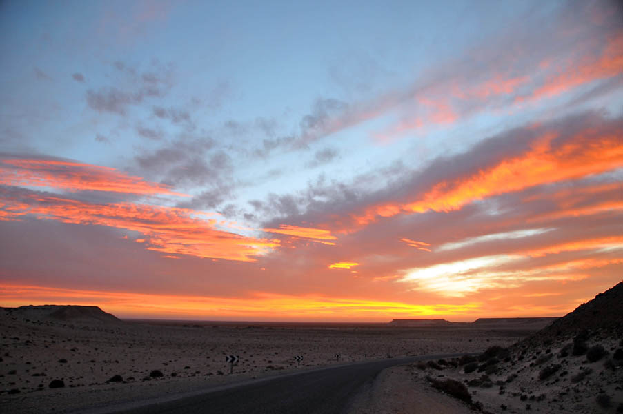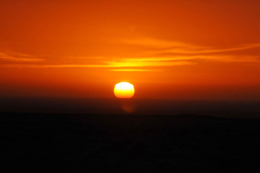 Salimos de Dakhla con intención de llegar a Sidi Akhfenir y coger habitación en La Corbina de Plata, un albergue francés, regentado por un francés (Paul Italiano), con cocina francesa. Ciertamente el albergue no tiene nada de especial comparado con otros muchos similares, pero el punto diferenciador viene de su acogedor salón, donde al atardecer suelen ofrecerte todo tipo de aperitivos y espirituosos en un relajado ambiente en el que los clientes se conocen y luego se pasa a cenar a las dos grandes mesas redondas, donde la cocina francesa bien preparada y basada en el estupendo pescado de la zona, acompañada de vinos rosados y tintos ponen un estupendo broche a la jornada… pero al llegar estaba cerrado, no habrían hasta el día siguiente, 28 de diciembre, la inocentada nos la habían gastado un día antes y después de 700 Km. y ya de noche cerrada nos quedamos con un palmo de narices.