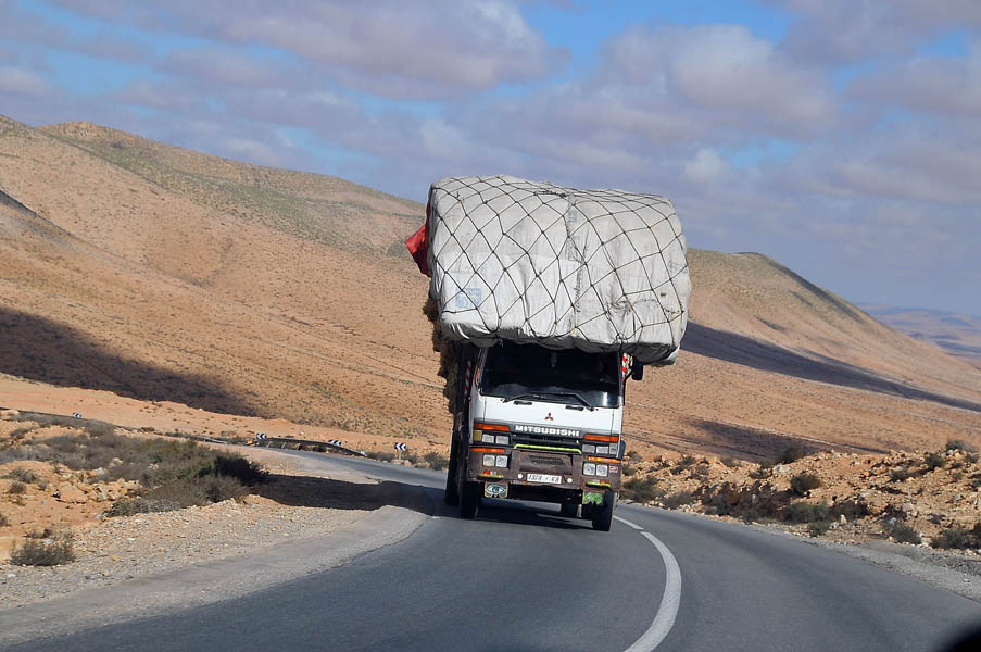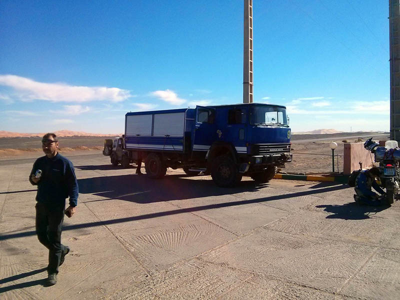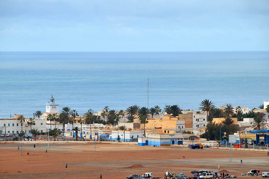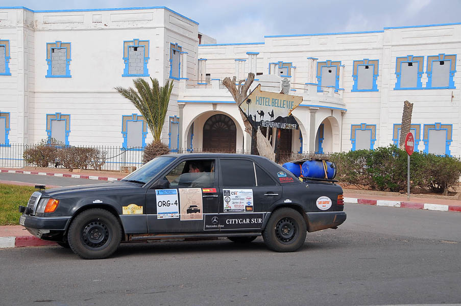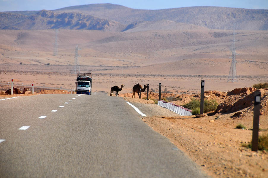 Tras levantarnos y desayunar, el jueves 26 nos dirigimos directamente a la frontera, salimos bastante rápido de Mauritania, atravesamos tierra de nadie, cumplimos con el papeleo marroquí y… a esperar. Resulta que ahora en esta frontera han instalado un scanner, y porque aún no lo tienen “de la mano”, o vaya ud. a saber porqué, el caso es que la caravana de camiones tenía varios cientos de metros dentro de tierra de nadie. Por suerte los coches hacíamos cola aparte y como habíamos llegado pronto, no teníamos más que tres o cuatro delante de nosotros. Por fin, en un par de horas, pasamos el scanner y pudimos salir de la frontera.
