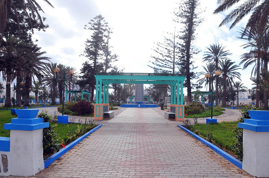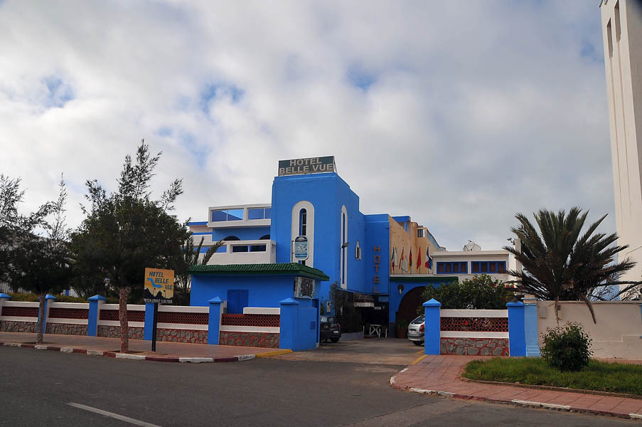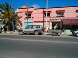 Continuamos por la calle principal del pueblo y ya casi saliendo vimos el Hotel Sahara Beach, un tres estrellas nuevo e impersonal, comparable a cualquier hotel moderno de cualquier cadena hotelera europea y de su misma categoría, que estaba limpio, bien mantenido y donde el cocinero se esmeró en darnos de cenar estupendamente en un salón, de nuevo comparable al salón de cualquier buen hotel europeo, sin duda un buen descubrimiento para cuando volvamos a caer por esta zona.