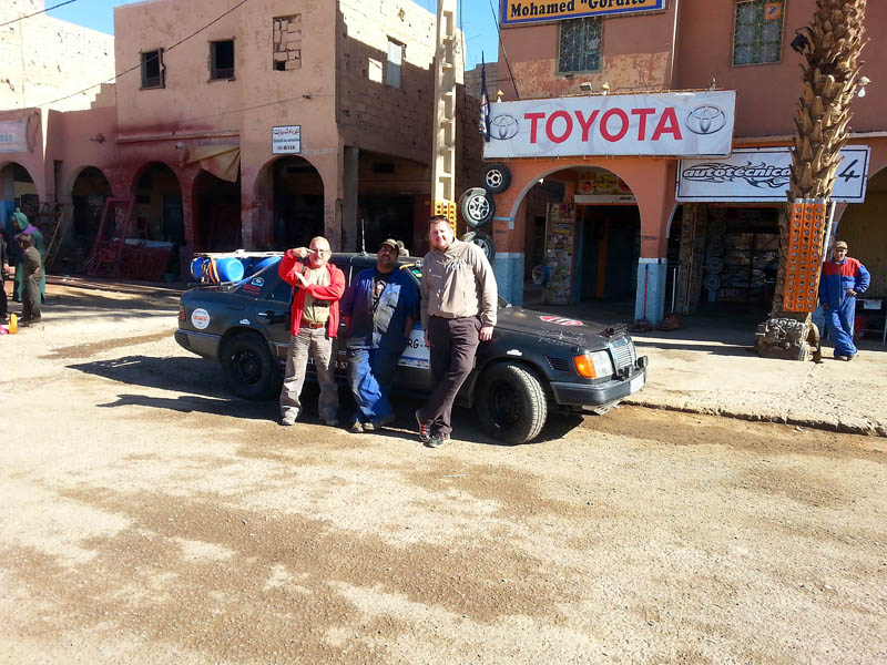El domingo 29, tras desayunar en el bar del propio hotel, seguimos dirección a Zagora por la pista de Foum Zguid, al llegar, cogimos habitación en la Kasbah Asmaa y le llevamos el coche a Mohamed el Gordito, para que nos mirase el famoso crujido que llevábamos desde que nos hicimos la pista de Playa Blanca, al principio de nuestro viaje.