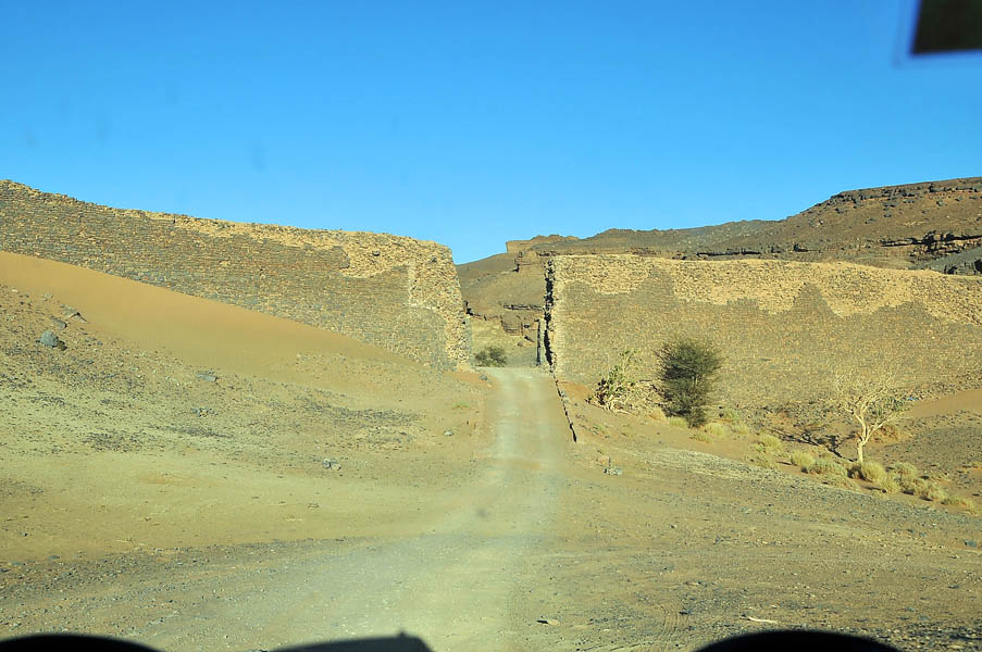 La Gara Medouar también es conocida como “la cárcel portuguesa”, aunque nunca ha sido cárcel, ni portuguesa, ni marroquí, ni nada, si bien el sobrenombre le puede venir de que el lugar en tiempos se aprovechó como acuífero natural por los habitantes de la zona, que mandaron construir un muro de seis metros de alto, realizado en el siglo XIX por los esclavos subsaharianos que posteriormente se vendían a Portugal; como pasaban largos periodos de tiempo picando piedra y, evidentemente, no creo que por las noches les dejasen irse a tomar unas copas a la cercana Rissani, es posible que el nombre le venga de aquello.