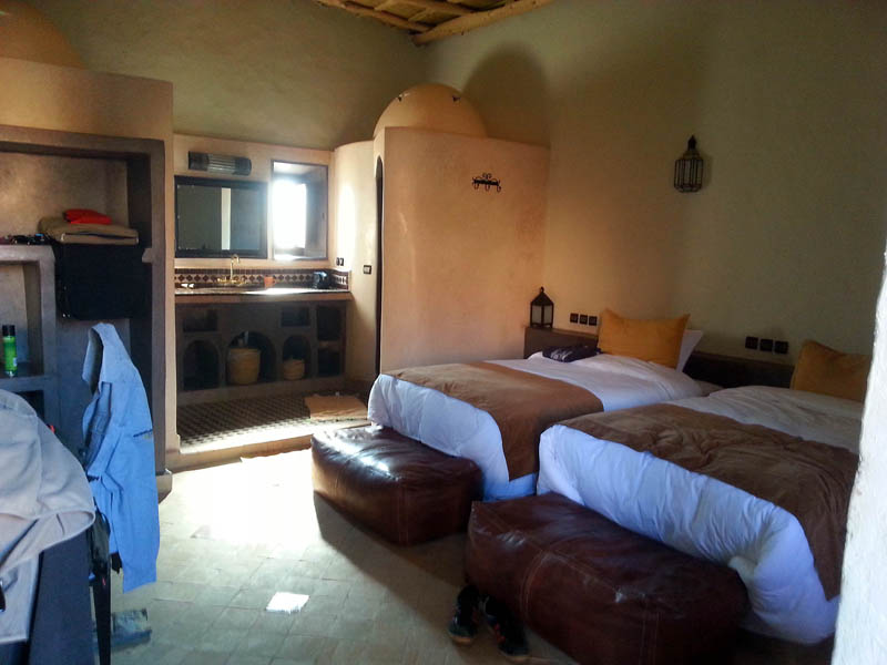 Durante esta búsqueda, en la que pasamos por diferentes albergues llenos, fuimos conscientes de nuevo de cuanto se “han subido a la parra” con los precios de las habitaciones (y de todo lo demás), en esta turística zona (ese es el problema). Así, en el Sahara nos pidieron 700 Dh. por una doble. Finalmente cogimos en el Takojt por 600 Dh.