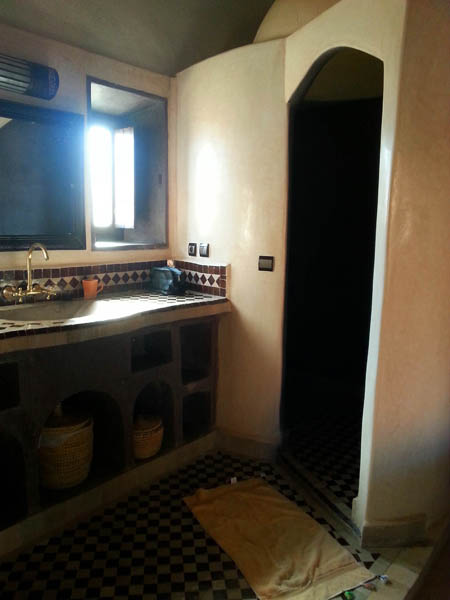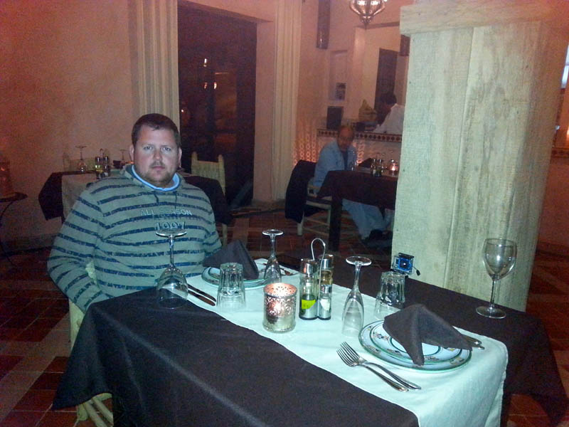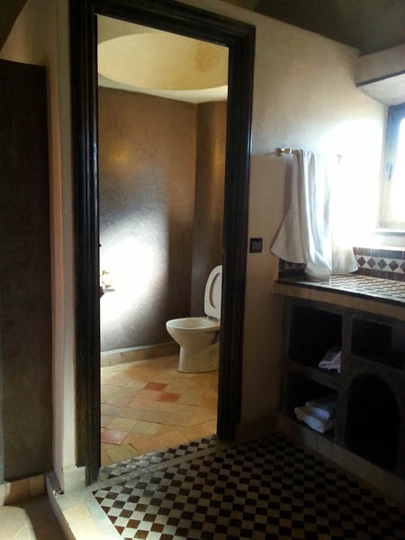 El miércoles 31, tras desayunar y sin ducharnos, salimos del Takojt y nos dirigimos directamente al Riad Madu. Este, también es caro, pero el servicio está al nivel de los mejores hoteles europeos, las instalaciones están nuevas y bien cuidadas, las habitaciones son amplias, luminosas y decoradas con mucho gusto y materiales de calidad. El sitio perfecto para pasar la noche de nochevieja con tu pareja… no como yo, con Jesús, un “bigardo” de casi dos metros y 120 Kg. en canal… me estoy ganado el cielo… jua jua
