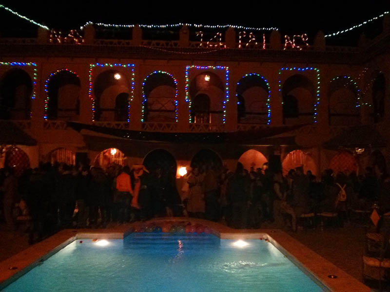 Al levantarnos, nos esperaba la cena especial de Nochevieja, que fue exquisita, las uvas, fuegos de artificio lanzados desde el interior de las dunas y que desde la terraza del albergue se veían espectaculares, y a continuación, volvimos al Nasser, donde habíamos quedado con unos cuantos amigos, a celebrar la “fiestuqui”, que se alargó hasta las cinco de la madrugada.