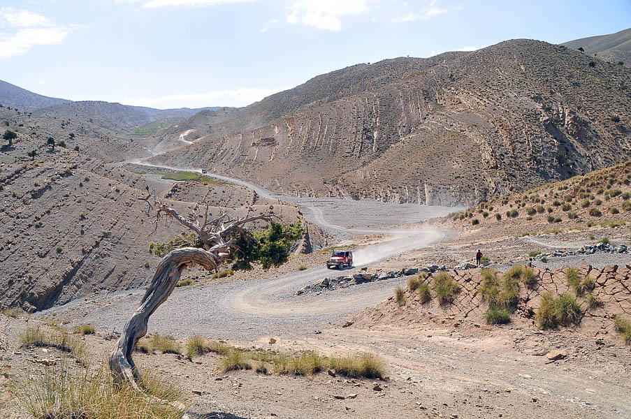Tras este primer tramo, y ya inmersos en los espectaculares paisajes que el Atlas ofrece, daba comienzo un segundo sector de regularidad en el que había que recorrer otros 56 Km. en 100 minutos. Aunque la navegación en este tramo no ofrecía demasiados problemas, estos venían de lo ajustado del tiempo y de lo atento que había que estar a la conducción, en algunos puntos en los que lo peligroso del trazado rivalizaba con la belleza de lo que se nos presentaba ante la vista.
