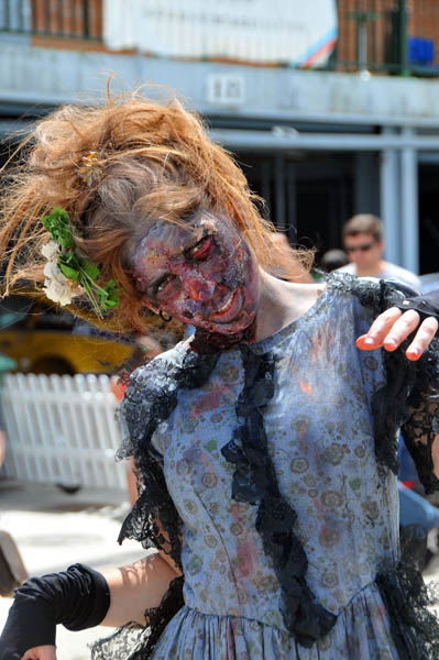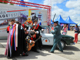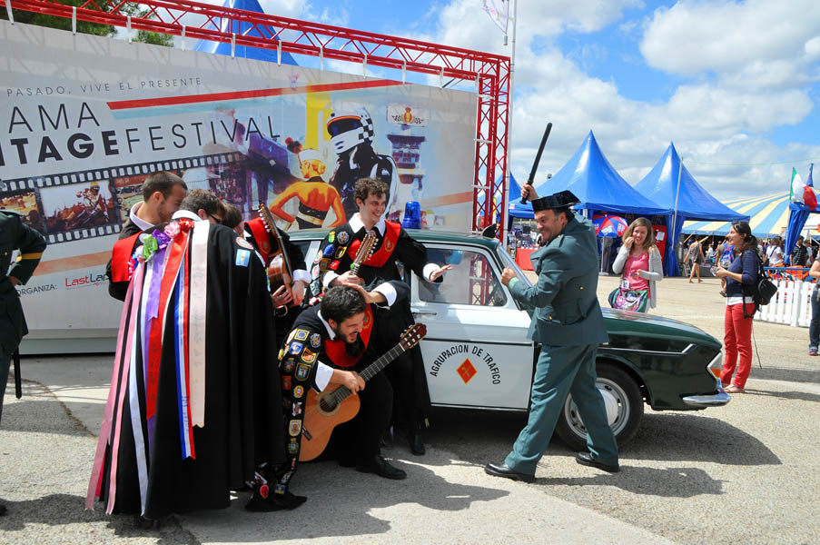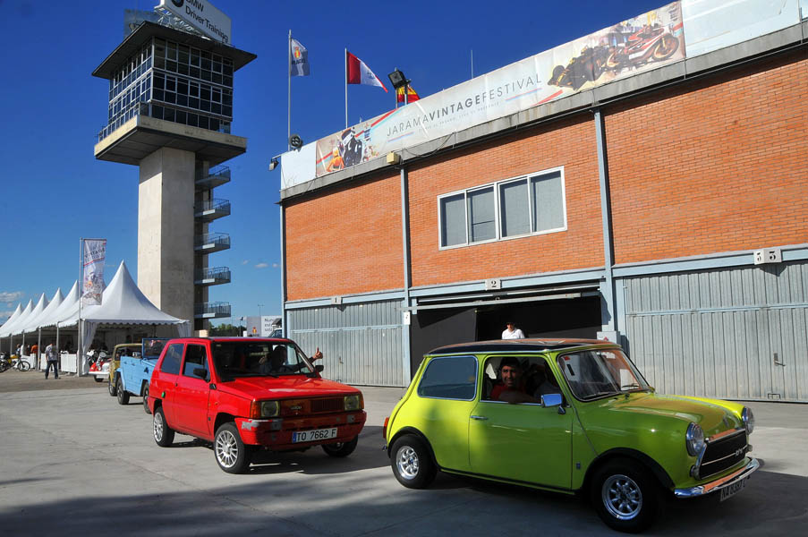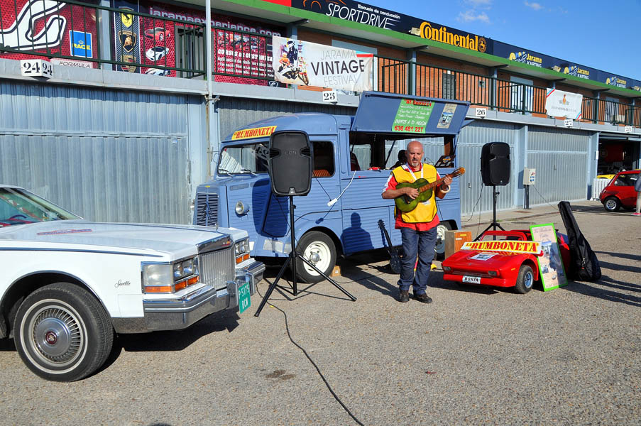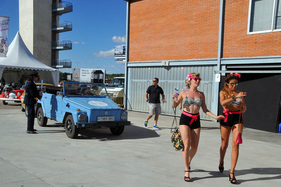 Y es totalmente cierto, porque más allá de los divertidos personajes que pululan por el paddock, disfrazados de Michael Jackson, zombies, pin up, colegiales o grupos musicales psicodélicos, el escuchar continuamente el pop y el rock de los años 60 y 70, a la vez que el sonido de tubarros y megáfonos luchan por hacerse con “el mejor sitio” en tu cerebro, te trasladan a una época en que coches y motos humeaban más, consumían más, eran menos ecológicos… pero tenían alma, despedían y provocaban pasión, tenían personalidad propia…