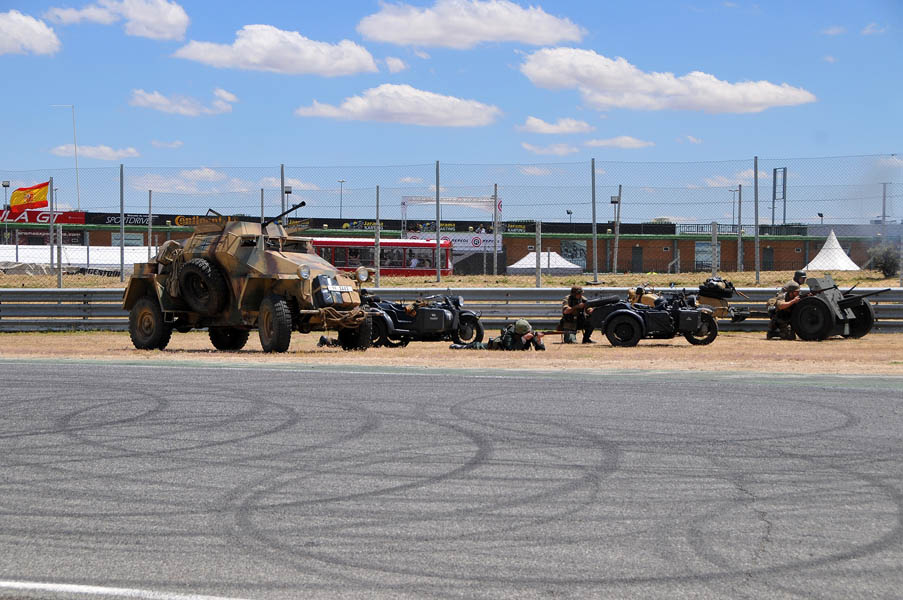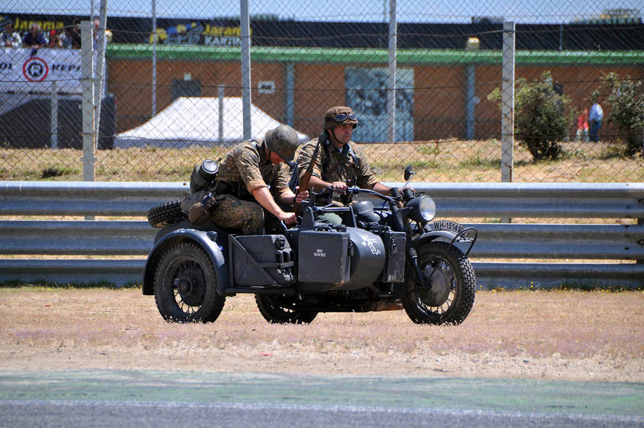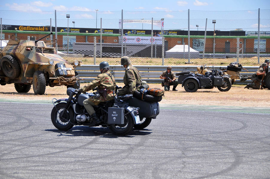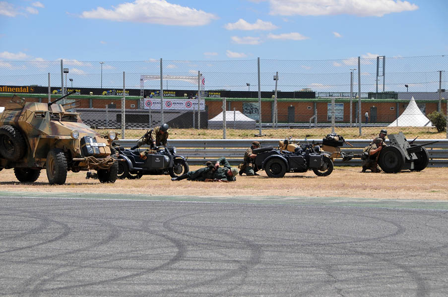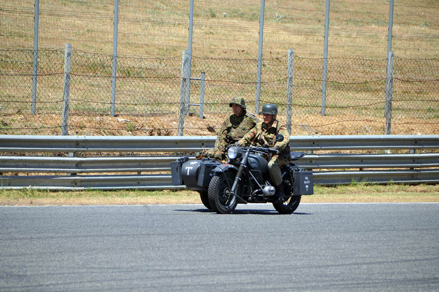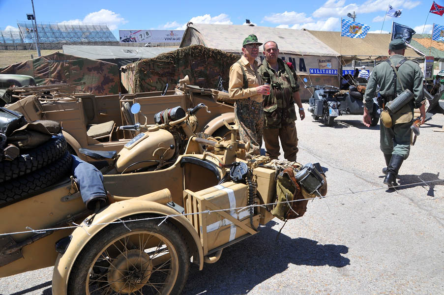 De la pista al paddock y del paddock a la pista, será un recorrido que realizarás “N” veces, y siempre con un motivo más que justificado. Porque justificado es ver en movimiento toda la colección de motos de Gran Premio que allí se reúnen… y verlas de cerca y en parado en las zonas de exposición; ver la escaramuza que organizan alemanes y americanos en la curva de Le Mans con sus BMW Guerra, Zundapp K601, etc. equipadas hasta los dientes con toda su equipación militar, y luego poder hablar con sus entendidos propietarios sobre motores, características, etc.