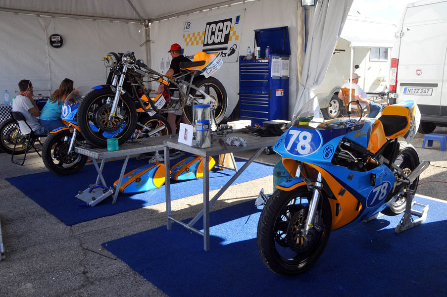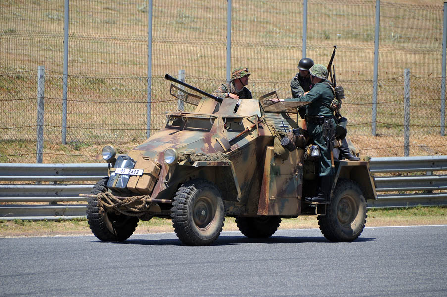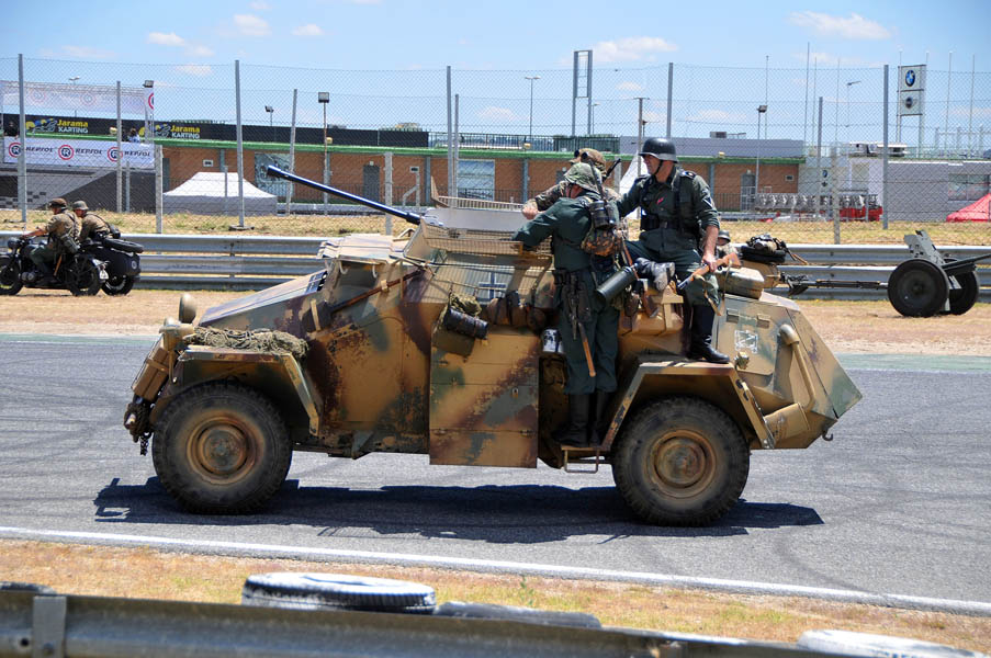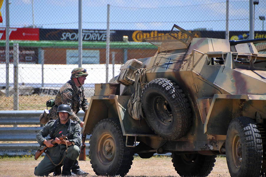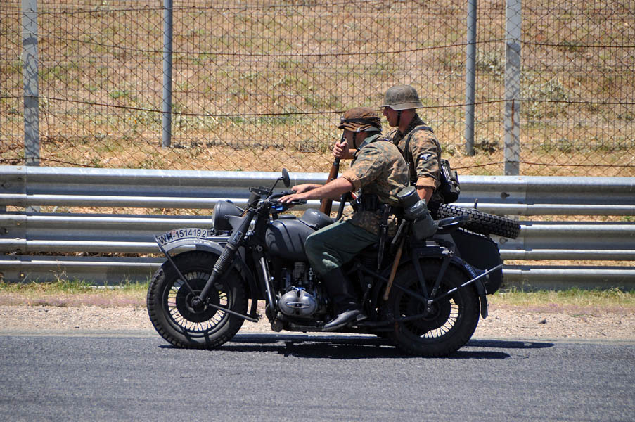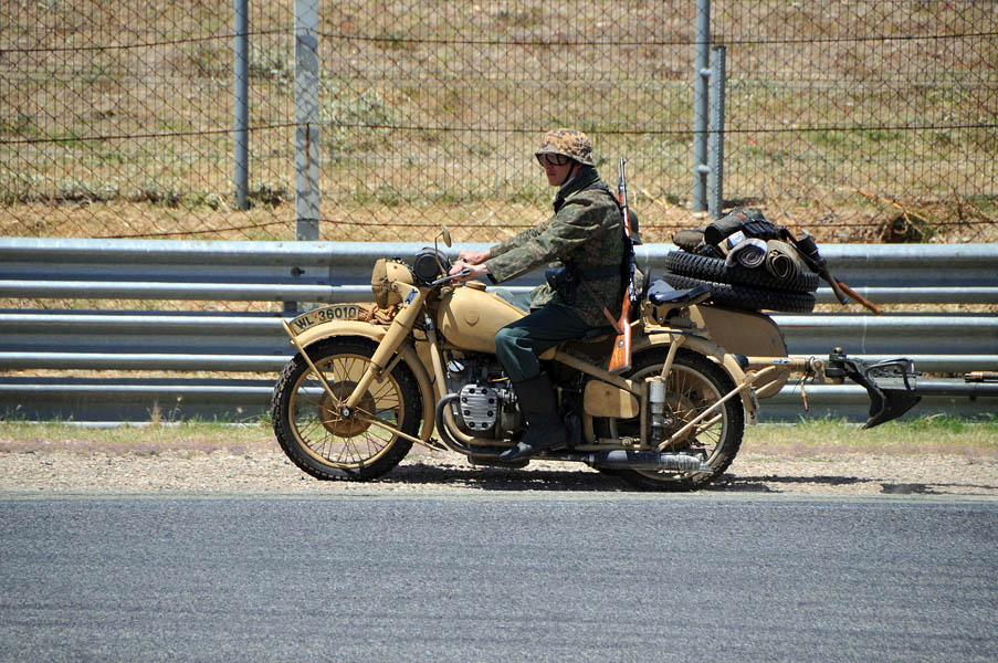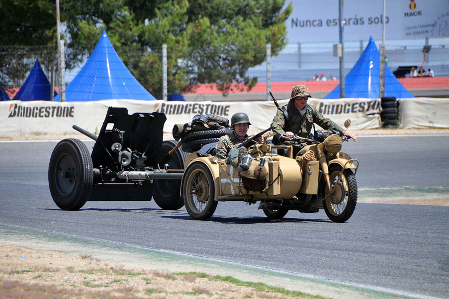 De la pista al paddock y del paddock a la pista, será un recorrido que realizarás “N” veces, y siempre con un motivo más que justificado. Porque justificado es ver en movimiento toda la colección de motos de Gran Premio que allí se reúnen… y verlas de cerca y en parado en las zonas de exposición; ver la escaramuza que organizan alemanes y americanos en la curva de Le Mans con sus BMW Guerra, Zundapp K601, etc. equipadas hasta los dientes con toda su equipación militar, y luego poder hablar con sus entendidos propietarios sobre motores, características, etc.