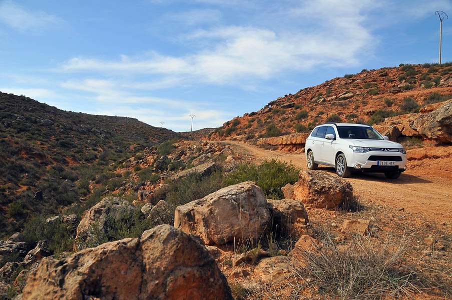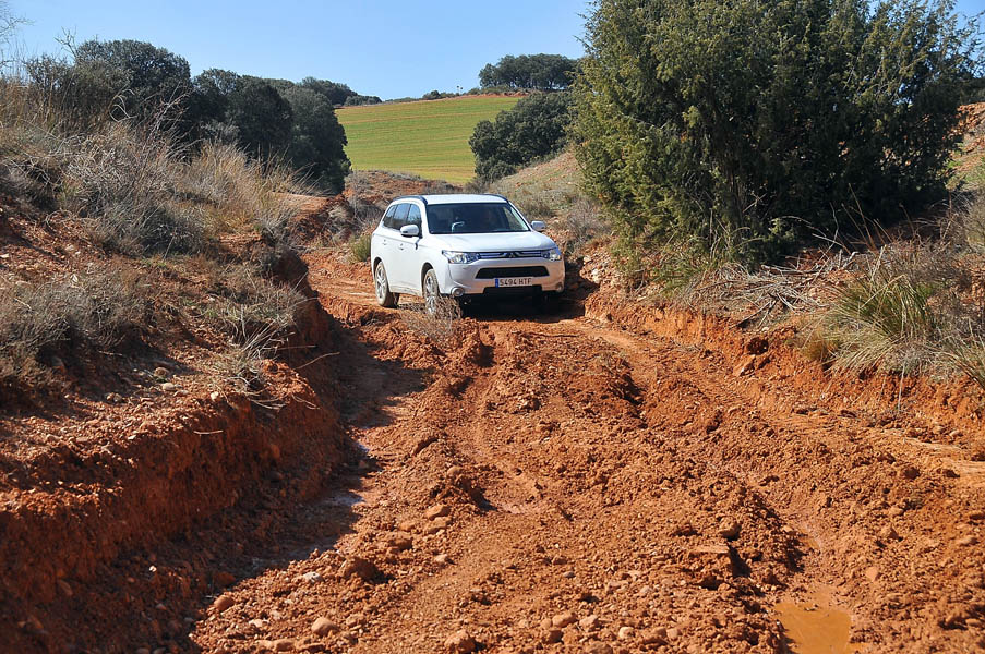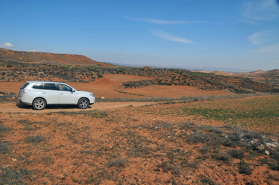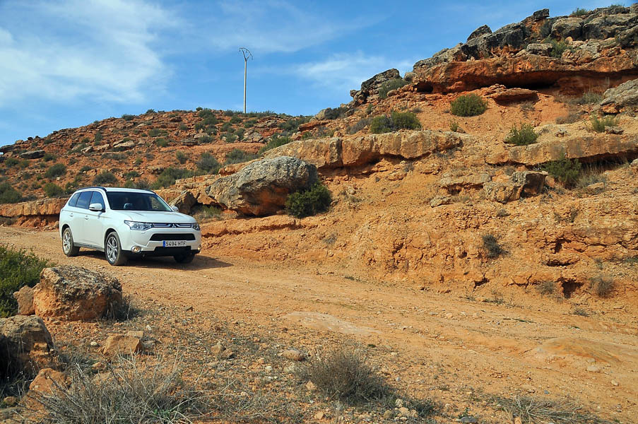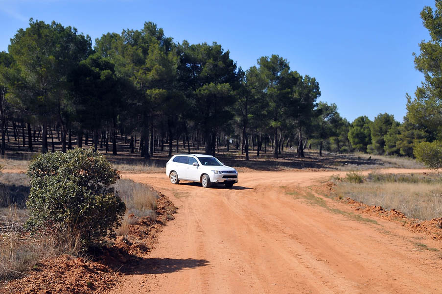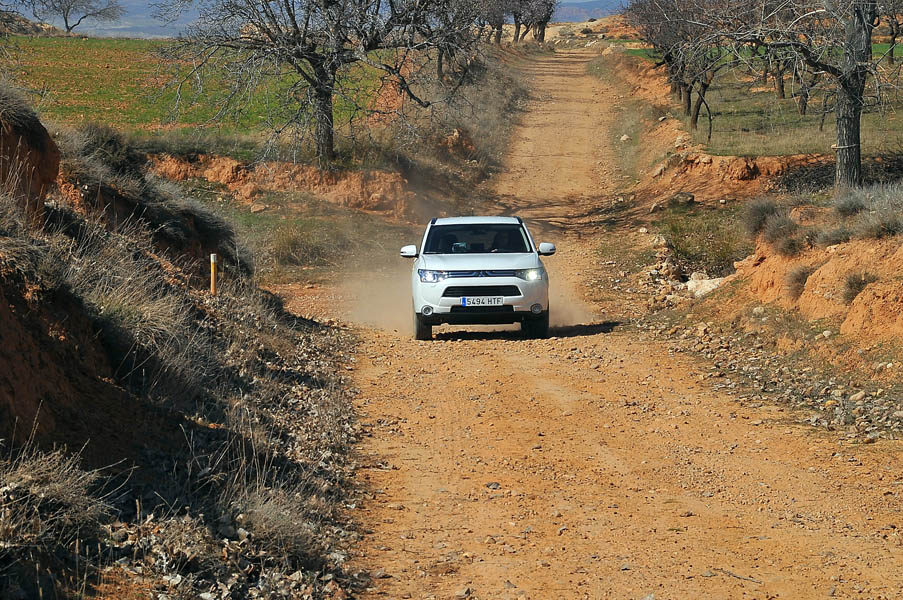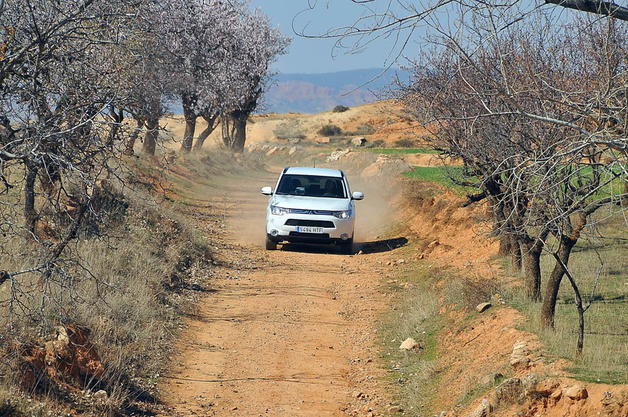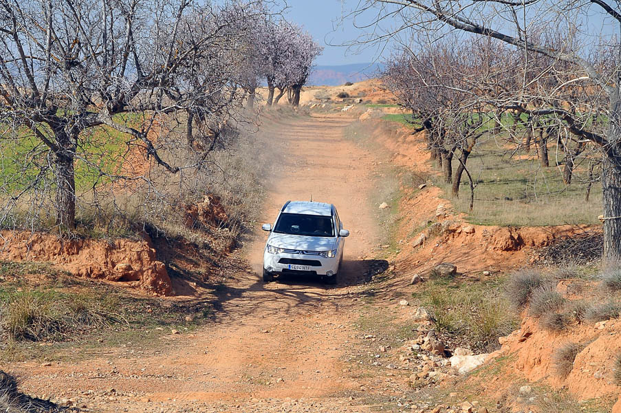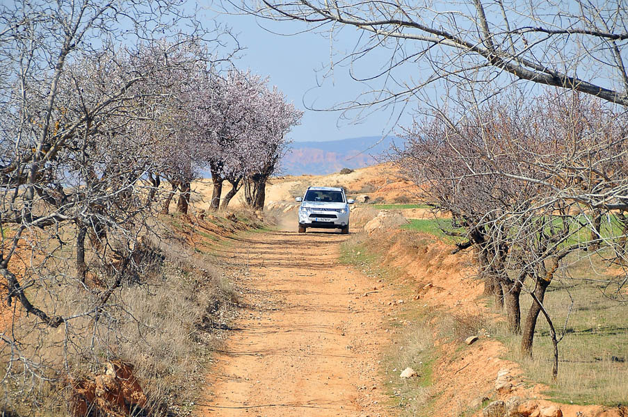 Más almendros nos acompañan buenos ratos por unas pistas, en general fáciles, pero que en ocasiones presentan profundas rodadas que nos ofrecen la posibilidad de ver como trabaja el sistema de tracción del Mitsubishi Outlander, que nos está haciendo de fiel compañero.