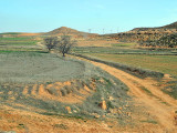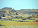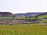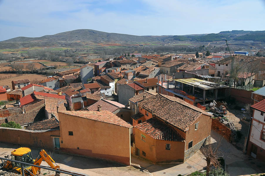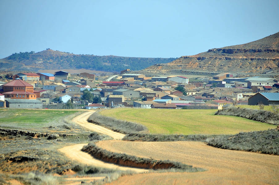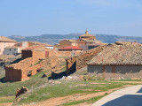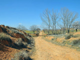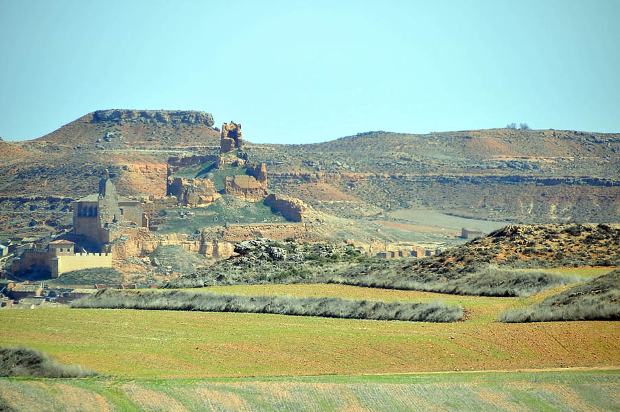 Salimos del pueblo hacia el norte para, entre las casas, coger una pista que pronto girará hacia el este y que sin problemas nos irá llevando, por una fácil pista entre montes bajos, campos arados y diversa vegetación, hacia Monreal de Ariza, cuyo castillo en ruinas pronto veremos en el horizonte.