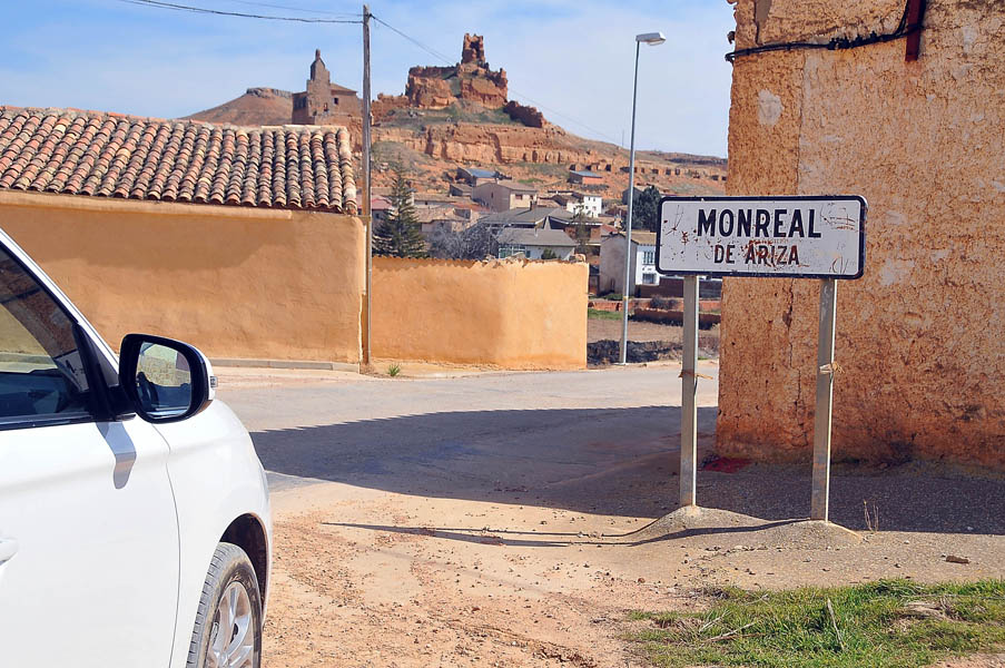 Seguimos de nuevo hacia Monreal de Ariza y ahora sí, desde sus calles, podemos observar en lo alto del cerro un importante castillo, fundado en 1128 por Alfonso I en él que estuvo el Cid. El castillo frenó el avance de Alfonso VII de Castilla y sufrió las guerras de los Dos Pedros a mediados del siglo XIV. En 1381 la villa y el castillo fueron vendidas por Pedro IV a Guillén de Palafox.