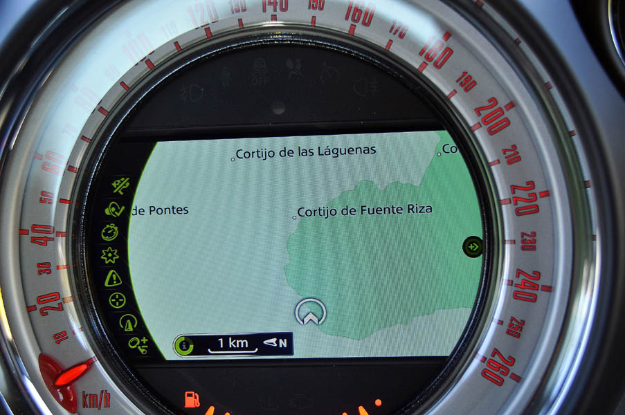 El Navegador de nuestro Mini Cooper SD Countryman, el compañero con el que estamos realizando nuestra ruta, nos muestra como vamos circunvalando el parque, que va poniendo a nuestra disposición un gran número de cobertizos, casas y cortijos en diferentes estados de uso u abandono.