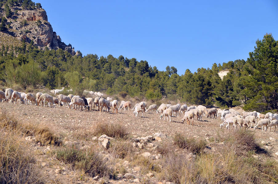 Tras visitar Cueva Ambrosio, nos dirigimos hacia el Embalse de Valdeinfierno, no sin antes cruzarnos con diferentes rebaños de ovejas y cabras y ver, en la distancia, las canteras de mármol blanco de Macael, de especial importancia en la comarca por su repercusión en la economía y por ofrecer un paisaje único por su impresionante geología.