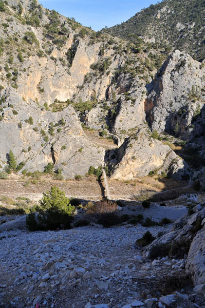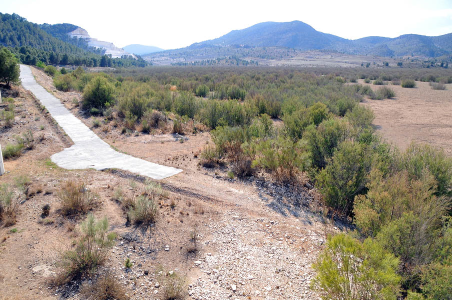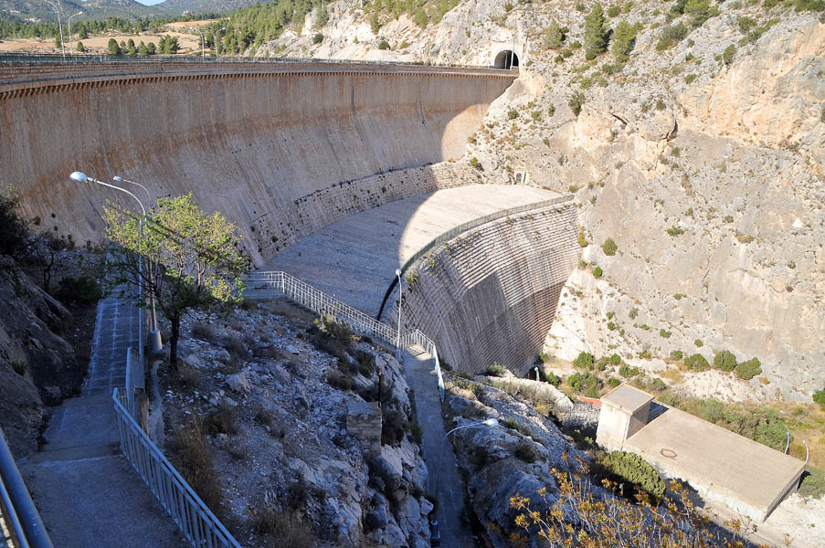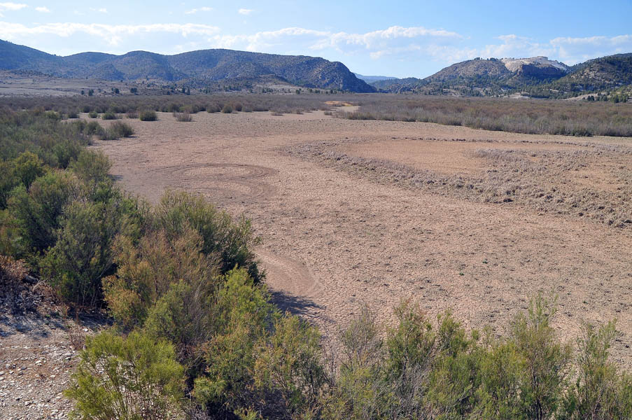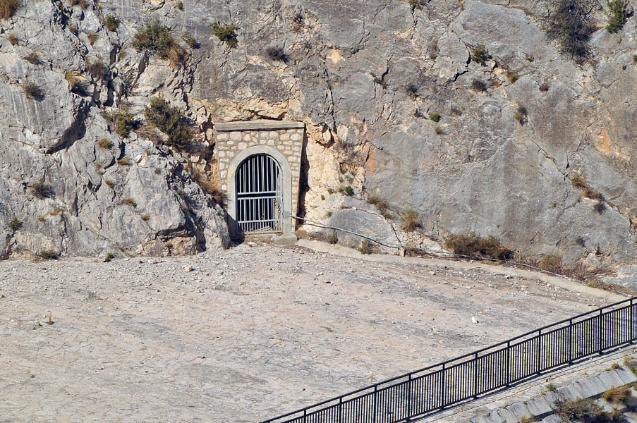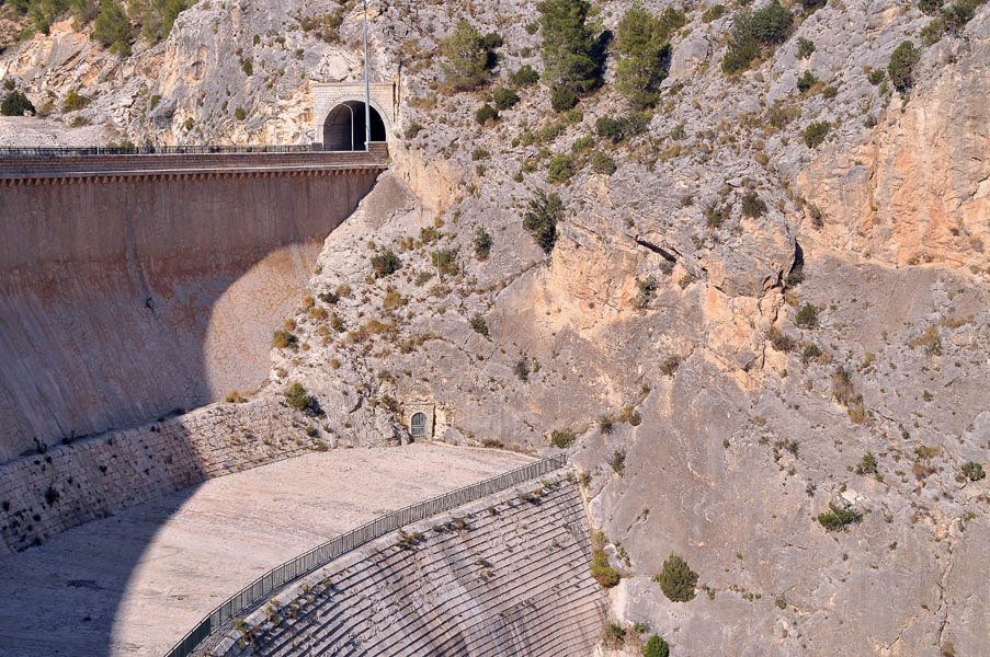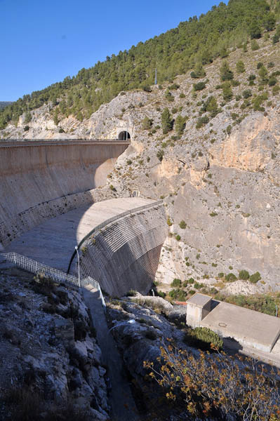 Finalmente, llegamos al Embalse de Valdeinfierno, que encontramos totalmente seco con apenas un charco de agua en contacto con la presa. Esta obra hidráulica está situada en el estrecho desfiladero que el río Luchena excava entre las sierras del Gigante y la Culebrina, a 700 metros de altitud.