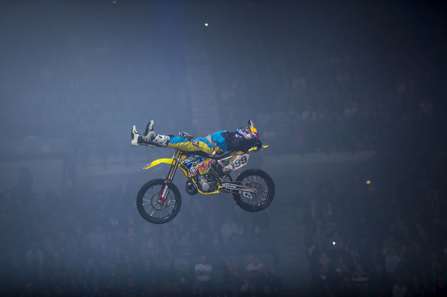 TP- Realmente esto cambia en cada Show, si bien en principio hay un guión y en este hay un truco más importante que los otros, lo cierto es que según se va desarrollando el Show, la gente quiere probar cosas nuevas y, de repente, lo que iba a ser el mejor truco, pasa a ser el cuarto o quinto mejor truco… No hay realmente mejor truco, puede ser cualquiera, depende mucho de la locura del piloto esa noche… El Nitro Circus progresa, tiene vida propia y no lo sometemos a restricciones, por lo que no hay dos espectáculos iguales.