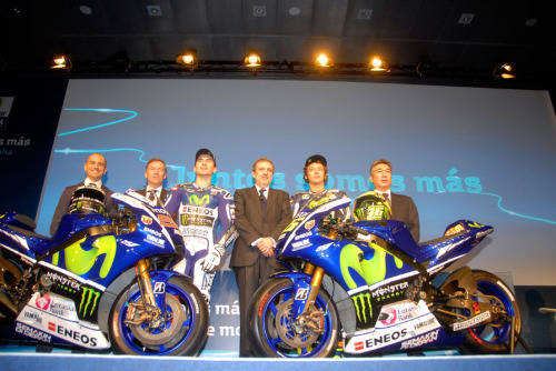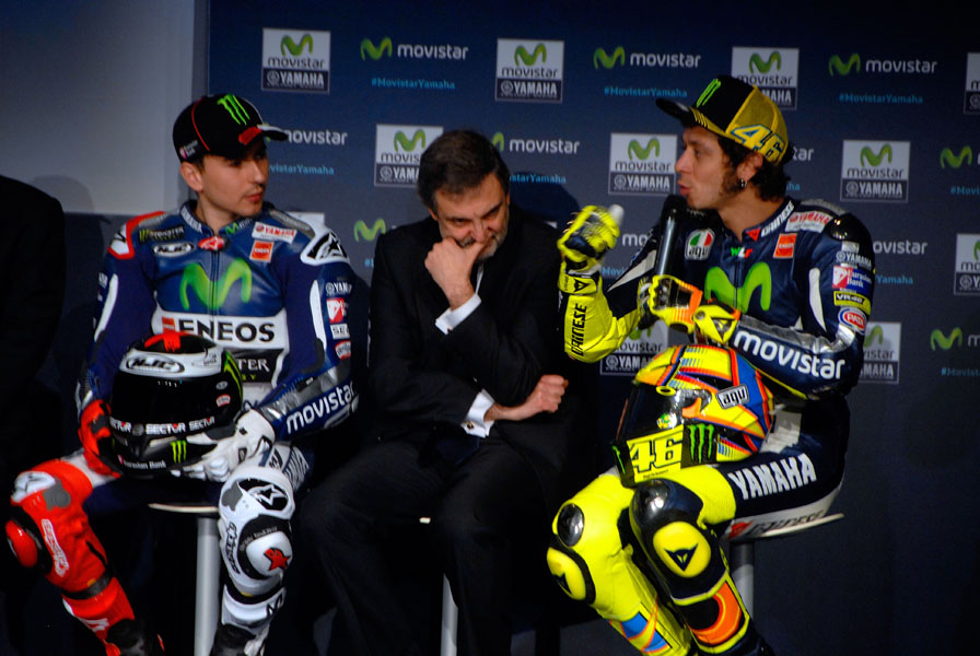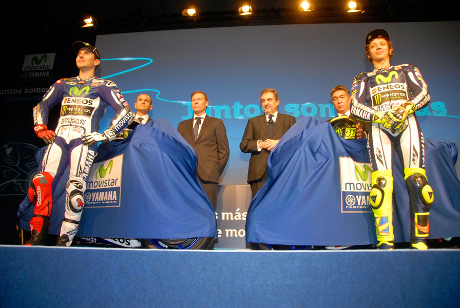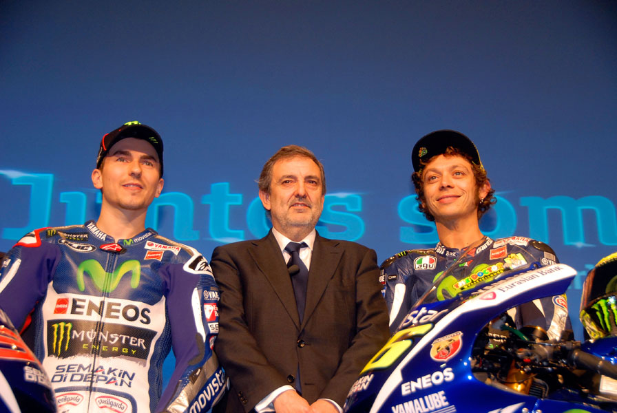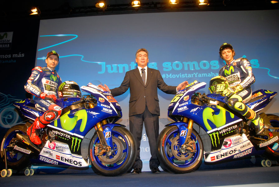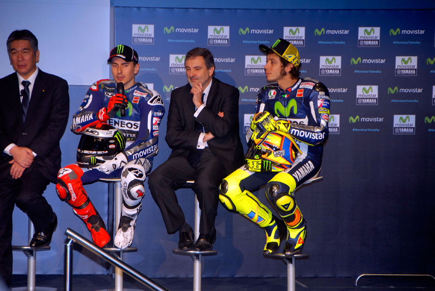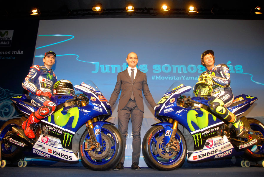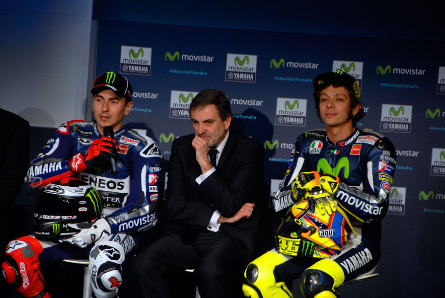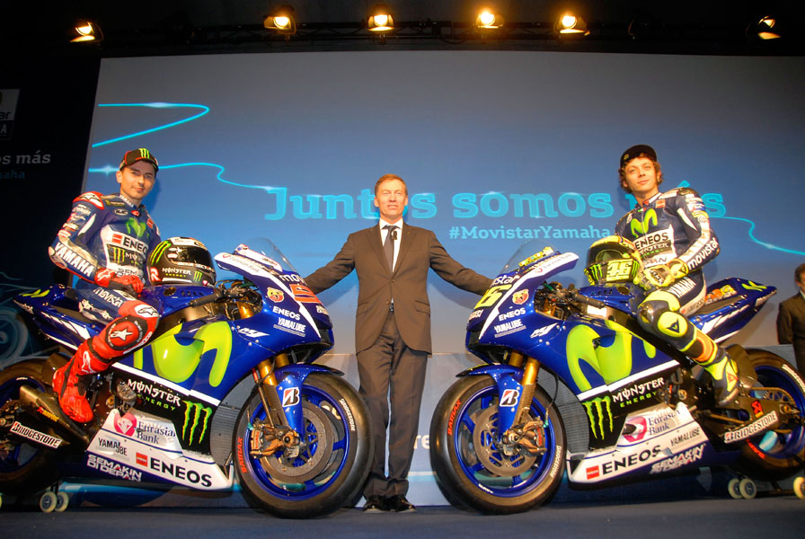 “Tenemos una vez más la suerte de contar con dos grandes campeones en el equipo y dos de los mejores pilotos del mundo: Valentino Rossi y Jorge Lorenzo. Ambos quieren lograr su objetivo: ganar carreras y hacerse con el título. Estoy seguro de que se han comprometido a trabajar juntos como pilotos del equipo Movistar Yamaha MotoGP para hacer sus motocicletas más rápidas y competitivas para desafiar a nuestros competidores”.