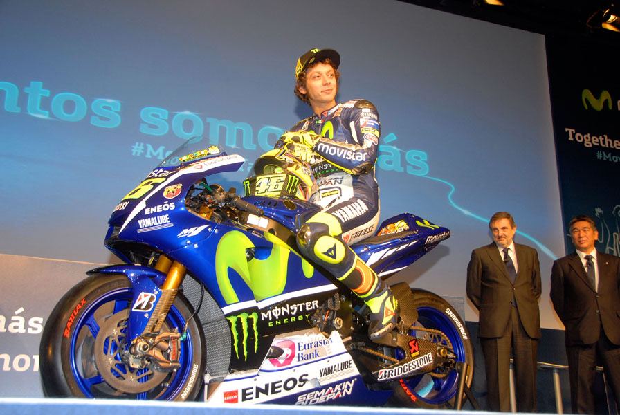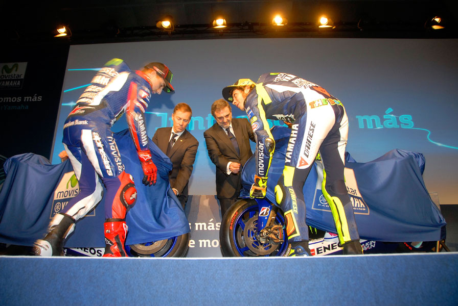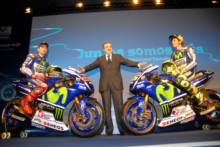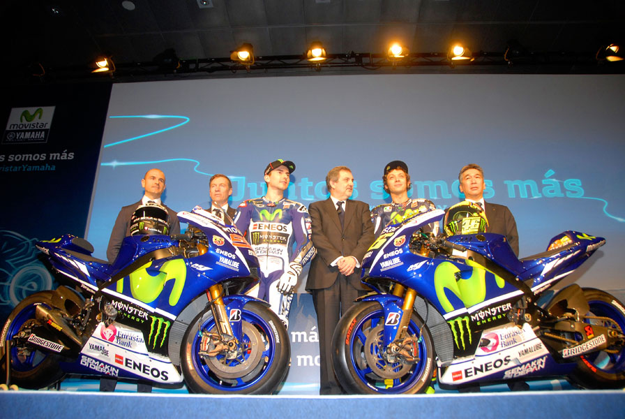 El Managing Director de Yamaha Motor Racing, Lin Jarvis, declaraba que “El año pasado tuvimos el honor de anunciar nuestra asociación con Movistar, una marca que tiene un larga historia, rica y exitosa, en el campeonato de MotoGP. Juntos disfrutamos de un primer año muy positivo en 2014 como punto de inicio de nuestra colaboración. Por eso, este año hemos decidido presentar la nueva moto en la casa de Movistar, en el Distrito Telefónica en Madrid”.