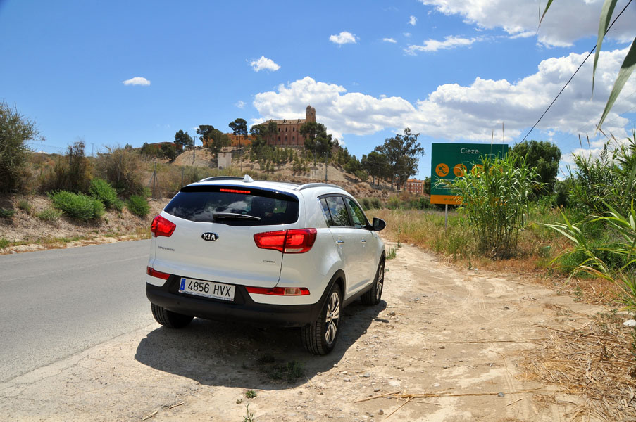 Cieza es la capital de la Comarca de la Vega Alta del Segura y puerta natural de la actual Región de Murcia por el norte hacia Castilla-La Mancha. Justo antes de entrar a la ciudad, pararemos para marcar el WP de salida de nuestra ruta, empezar a grabar el track que realizaremos y realizar las primeras fotos de nuestro coche, un Kia Sportage, a los pies de la Ermita del Cristo del Consuelo.