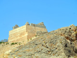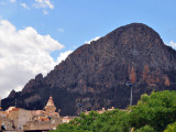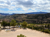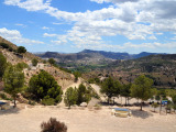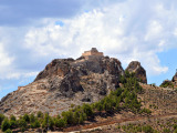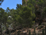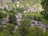 Todavía nos quedará un rato de pista, rodeados de pinos y carrascas hasta llegar a las inmediaciones del municipio, cuya primera y destacada vista que nos ofrece es la de la muralla del castillo musulmán y su torre cristiana (XIII-XVII).