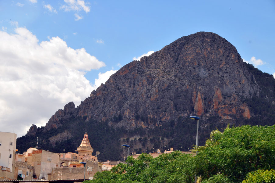 Pocos metros más adelante pararemos para fotografiar el Monte de la Atalaya, que pertenece a las estribaciones de la Sierra del Oro, por donde circularemos más tarde, alzándose majestuoso sobre la ciudad y sobre su principal templo, la Basílica de Ntra. Sra. de La Asunción. Declarado Bien de Interés Cultural y edificado en el siglo XVIII sobre una iglesia anterior de los siglos XV o XVI. De particular interés resulta su peculiar campanario, de planta octogonal, si bien sólo el primer cuerpo de este campanario data de la fecha de construcción del resto de la Basílica, pues los dos cuerpos posteriores datan del siglo XIX. En el interior del templo se conserva una importante colección de imaginería contemporánea, con presencia de piezas de autores tan capitales como González Moreno, Capuz, Planes, Pinazo o Álvarez Duarte.