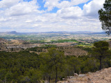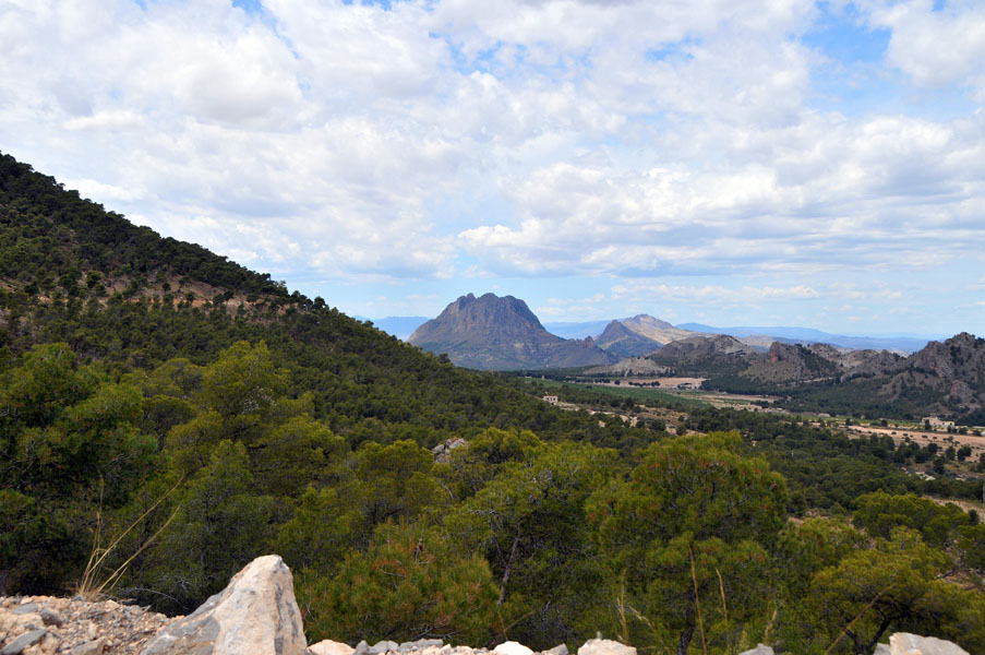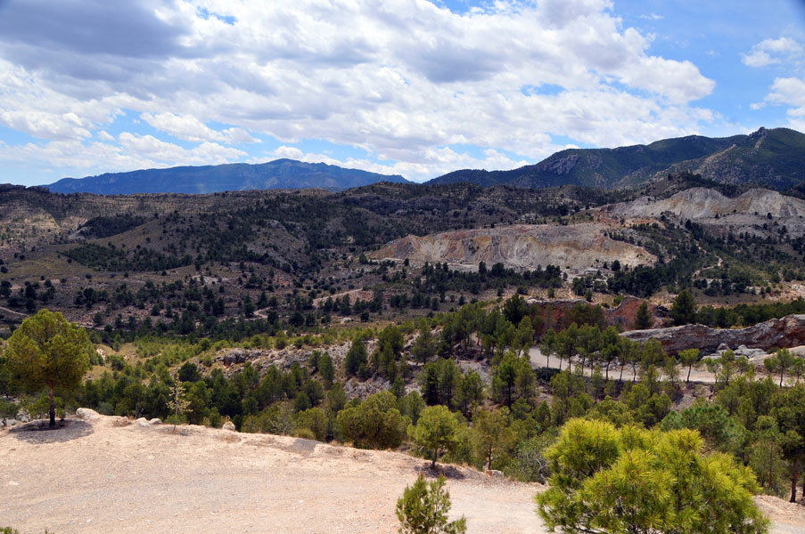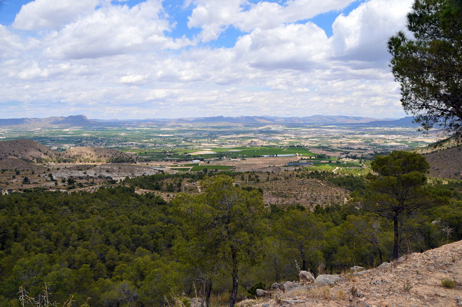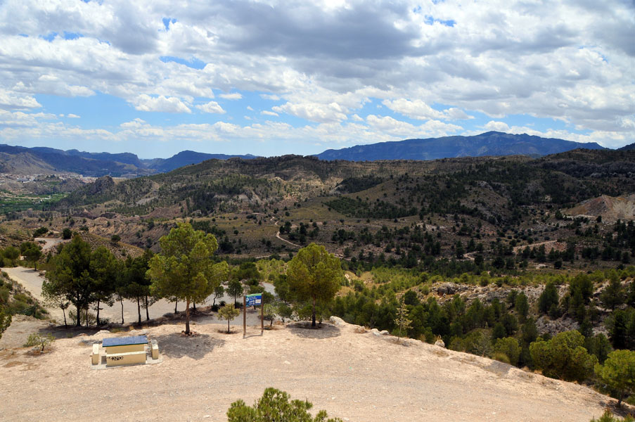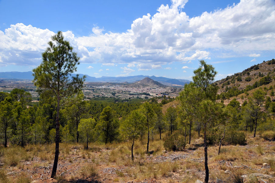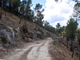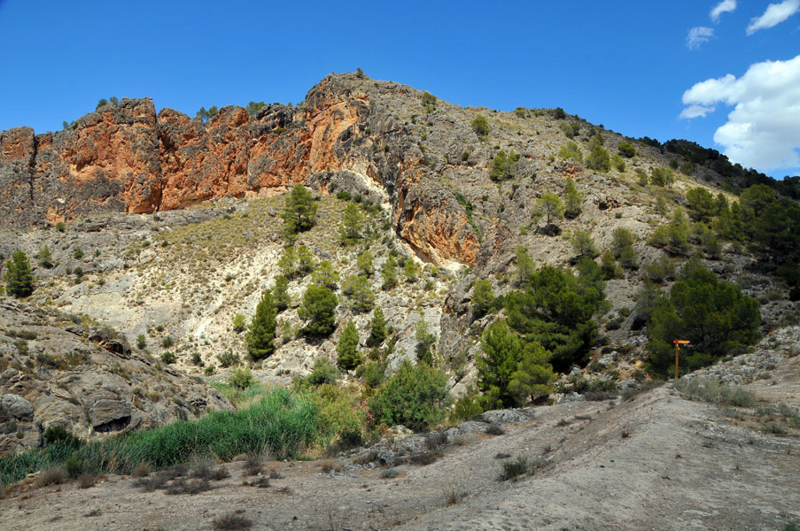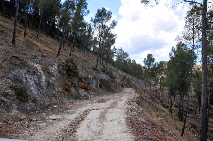 Tras deshacer nuestros pasos para llegar a la misma pista que traíamos antes de desviarnos para subir a La Atalaya, continuaremos introduciéndonos por la zona norte de la Sierra del Oro. Esta es la sierra por antonomasia de pueblos como Cieza y Abarán, encuadrada dentro del sistema subbético, donde las masas de pino carrasco se extienden en las alturas de las escarpadas laderas, y donde no faltan la coscoja, el romero, el tomillo, el lentisco o el afamado esparto, que aparecen en las zonas mas abiertas.