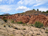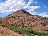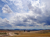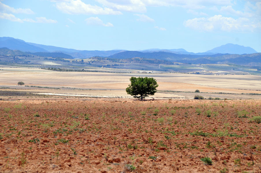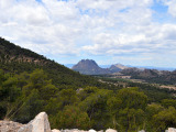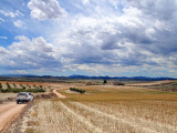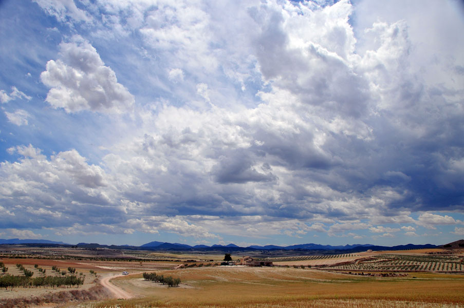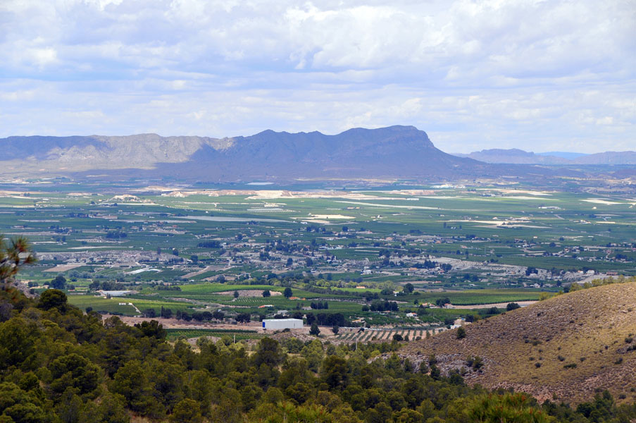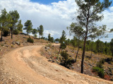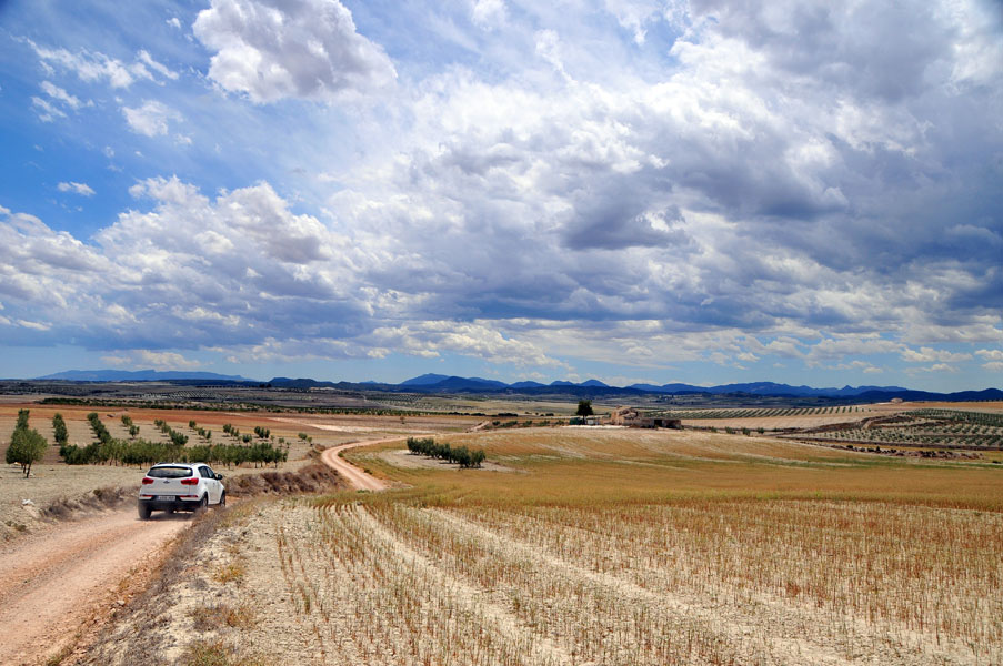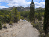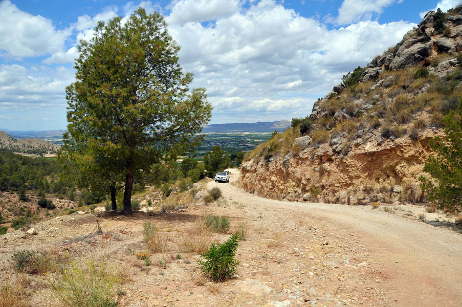 Aunque nos movemos en altitudes que por poco superan los 500 mts. la sensación es la de estar inmersos en alturas superiores a los 1500 mts. La pista es estrecha, con barrancos de diferentes altitudes a nuestra derecha que a ratos, nos permiten ver grandes extensiones de vega y, al fondo, las estribaciones de la Sierra del Puerto.