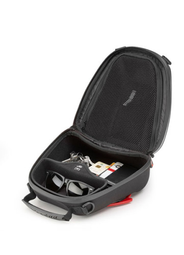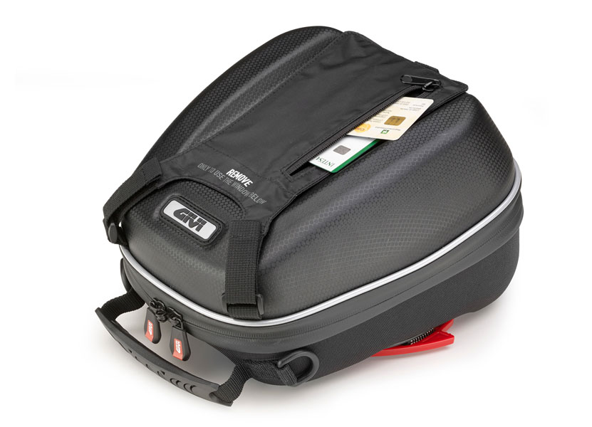 Las nuevas bolsas sobre depósito de GIVI tienen una estructura semi-rígida que combina EVA laminada y poliéster 1000D. Estos materiales aportan una gran estabilidad de carga manteniendo un peso liviano. La cubierta superior de las 3D de GIVI ha sido fabricada mediante un proceso de termo moldeado que garantiza una plena capacidad de carga sin riesgo de ruptura, y da a las bolsas un aspecto aerodinámico y deportivo. Además, vienen equipadas con una funda a prueba de agua.