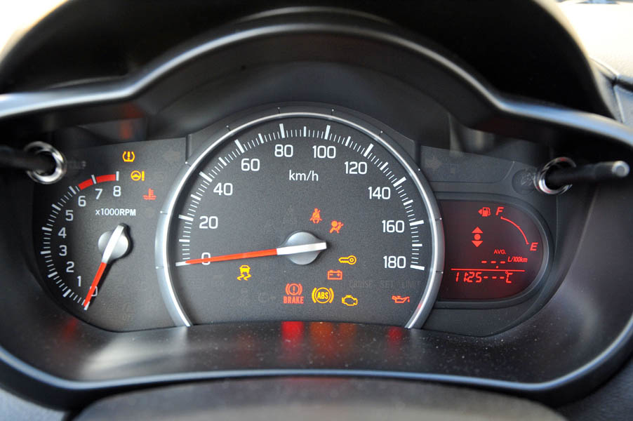 El cuadro aunque sencillo, es agradable a la vista y contiene información suficiente. Destaca en el centro un gran velocímetro acompañado a su izquierda por un tacómetro cuya zona roja empieza en las 6200 rpm.