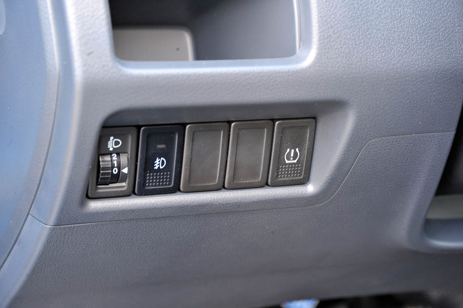 A la izquierda del volante tenemos el mando para regular la altura de las luces, el botón del antiniebla y el de reseteo del TPMS (control de neumáticos con baja presión).