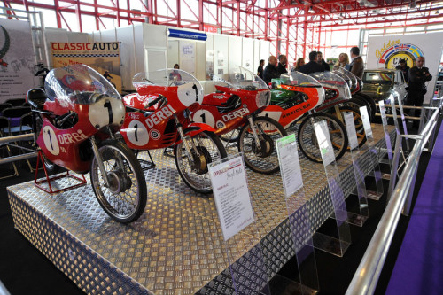 El deporte y la competición también estuvieron presentes en ClassicAuto y pudimos ver una colección de motos de Gran Premio con unidades de los primeros 40 años de la categoría reina del motociclismo de competición.