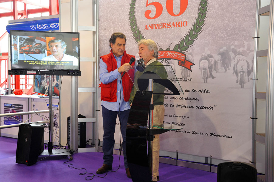 Uno de los protagonistas de esta edición ha sido el piloto Ángel Nieto, a quien se le rindió un homenaje al cumplirse este año el cincuenta aniversario de su primera victoria en el Campeonato de España de Motociclismo. Ocurría en Sevilla el 19 de septiembre de 1965, aquel día nacía la leyenda del piloto del 12+1.