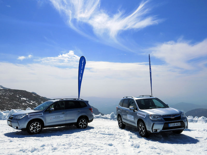 Con motivo de la presentación oficial del circuito, contamos con la colaboración de Subaru, que nos dejó poner a prueba sus nuevos Forester y Outback con la tracción integral permanente simétrica; además, Bridgestone aportaba su nueva gama de neumáticos de invierno Premium Blizzak LM 80 EVO.